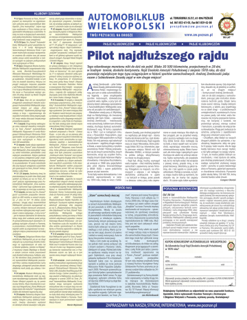 KLUBOWY DZIENNIK nością udział grupy ratowników w niezwykle popularnym programie „Familiada”. Cóż, nie od dzisiaj wiadomo, że żadnych wyzwań Ci szlachetni ludzie się nie obawiają! l 30 sierpnia. Krzysztof Szukała działający niezwykle prężnie w Delegaturze Mosina Automobilklubu Wielkopolski po miesiącu od zorganizowania poprzedniego rajdu zaprosił tym razem na „Pożegnanie lata”. Z zaproszenia skorzystały aż!!!! 34 załogi!!!. W nietypowym i pełnym atrakcji miejscu –Stajni Galantówce – zorganizowano metę. Przy naprawdę „swojskim” poczęstunku i atrakcjach z konikami w roli głównej ogłoszono wyniki rajdowych zmagań. Zwyciężyli Marek Śmiglak i Dominik Wegner. l 30 sierpnia. Nowy Tomyśl zaprosił za sprawą działającej w nim Delegatury Automobilklubu Wielkopolski Panie na rajd „Panie za kierownicą”. Na start zgłosiło się 17 w większości damskich załóg spragnionych dobrej turystyczno-rajdowej zabawy. Po przejechaniu 41 kilometrowej trasy przez gminy Nowy Tomyśl i Zbąszyń na mecie Komandor Radosław Halasz w towarzystwie Alicji Halątki – wiceprezes Automobilklubu Wielkopolski – wręczył puchary i nagrody dla najlepszych załóg. Zwyciężyły panie Eliza Bąblińska-Masztalerz i Anna Dutka z Nowego Tomyśla. l 8–9 września. W związku z niezwykle wzrastająca popularnością „Dnia motocyklisty” Automobilklub Wielkopolski zorganizował na Torze „Poznań” kolejna edycję tego wydarzenia. Tym razem trwającą dwa dni. Świadomi swoich korzyści oraz pragnący zwiększyć swoje bezpieczeństwo i innych użytkowników ruchu drogowego motocykliści przyjechali z całej Polski do Przeźmierowa. Nie lada atrakcją była również wizyta motocyklowej Policji Drogowej. l 4–6 września. Wieloletni organizator wydarzeń związanych z Porsche – Dariusz Krupa – w tym roku, po raz pierwszy jako dyrektor zaprosił wszystkich miłośników tej legendarnej marki samochodów na organizowany wspólnie z Automobilklubem Wielkopolski „POZnań International Porsche Festival”. Nietypowa, nowa formuła zlotu, której głównym przesłaniem pierwszego dnia było pokazanie uczestnikom „Urokliwych okolic Poznania” oraz typowo sportowe zmagania drugiego dnia na Torze „Poznań” spotkała się z dużym zadowoleniem wszystkich uczestników. A dla mieszkańców Wielkopolski wielkim przeżyciem było spotkanie ponad 100 aut słynnego niemieckiego koncernu. Jednak nie tylko szybkość i moc królowała w Poznaniu i okolicach w ten weekend bowiem… l 3–6 września. …zagościły na naszych wielkopolskich drogach również niezwykle urokliwe i ciągle pełne zadziwiającego piękna zabytkowe pojazdy. Na zaproszenie działającej w Automobilklubie Wielkopolski Komandor Hanny Furmanowskiej przyjechały do Poznania ponad 54 załogi biorące udział w XXXVI Poznańskim Międzynarodowym Rajdzie Pojazdów Zabytkowych. Turystyczno rajdowe zmagania zakończył pierwszego dnia rozegrany po raz 6 „Międzynarodowy Wyścig Pojazdów Zabytkowych” na Torze „Poznań” Automobilklubu Wielkopolski, którego pomysłodawcą i twórcą jest znany w Polsce miłośnik zabytkowych pojazdów i kustosz klubowego Muzeum Motoryzacji – Jan Cynka. Prawdziwa ucztę dla wszystkich zmysłów widzów zgromadzonych na Starym Rynku w Poznaniu zapewniła w sobotę tradycyjna parada elegancji. l 11-13 września. Kolejny raz Automobilklub Wielkopolski gościł na Torze „Poznań” zawodników startujących w X i XI rundzie Wyścigowych Samochodowych Mistrzostw Polski oraz V rundzie Kia Picanto Lotos Cup i Kia cee'd Lotos Cup. Rozgrzana rywalizacją kierowców nawierzchnia toru w Przeźmierowie ostatni raz była się w tym sezonie areną zmagań najlepszych kierowców. l 17-20 września …torem zawładnęli zawodnicy motocyklowi organizowanej drugi raz w Polsce prestiżowej eliminacji Wyścigowych Motocyklowych Mistrzostw Alpe Adria UEM, Zawodów Kwalifikacyjnych Mistrzostw Europy. Czołowi zawodnicy z Europy zawitali w Wielkopolsce, by zakończyć zmagania w sezonie 2009 na Torze „Poznań” Automobilklubu Wielkopolski. To największe rangą wyścigowe wydarzenie motocyklowe roku w naszym kraju ma wielotysięczną grupę miłośników kibicujących swoim jeźdźcom również dzięki realizowanej na dużą skalę relacji telewizyjnej przez Telewizję Polską Oddział w Poznaniu. Przedsięwzięcie to swym partnerstwem wsparło Miasto Poznań. Marcin Wojcieszak prez [email protected] 86 LAT PASJE KLUBOWICZÓW l PASJE KLUBOWICZÓW l PASJE KLUBOWICZÓW Pilot najdłuższego rajdu Tego rekordowego maratonu nikt do dziś nie pobił. Blisko 30 500 kilometrów, przejechanych w 28 dni, w trudnym terenie, dookoła kontynentu. Rajd Dookoła Ameryki Południowej z sierpnia 1978 roku, do dziś pozostaje największym tego typu osiągnięciem w historii sportów samochodowych. Andrzej Zembrzuski jadąc razem z Sobiesławem Zasadą zajął w nim drugie miejsce! ndrzej Zembrzuski – pilot Sobiesława Zasady, jedenastokrotnego mistrza Polski i trzykrotnego Europy, jest sam w sobie automobilklubową legendą – żywa encyklopedia sportów motorowych, doświadczony uczestnik wielu rajdów, a przy tym obdarzony darem ciekawego opowiadania. Z Automobilklubem Wielkopolski związany od początku lat sześćdziesiątych. – Mieszkałem wtedy przy ul. Młyńskiej, skąd na Mielżyńskiego, do ówczesnej siedziby AW było blisko – opowiada Andrzej Zembrzuski. – Interesowały mnie samochody, lubiłem tam chłonąć wiedzę, słuchając dyskusji automobilklubowych wyg. W końcu zapisałem się w 1962 i już w następnym roku, wraz z Ryszardem Kopczykiem, jego Wartburgiem 900 pojechałem na Rajd Polski. Ten mój pierwszy rajd zakończył się sukcesem – zajęliśmy drugie miejsce w klasie, a sezon kończyliśmy z tytułem wicemistrza Polski! Później przesiadałem się do innych samochodów, innych kierowców, wciąż się uczyłem fachu, między innymi dzięki Adamowi Wę
