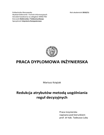 1.5. Redukcja atrybutów metodą uogólniania reguł .......................................................................... 13