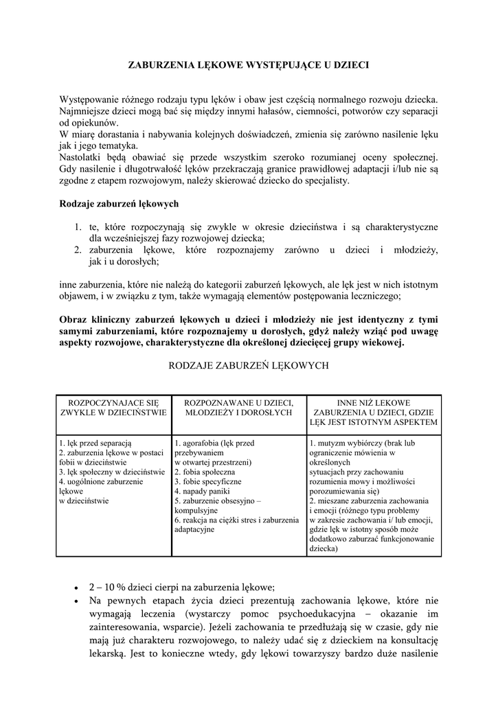 ZABURZENIA LĘKOWE WYSTĘPUJĄCE U DZIECI