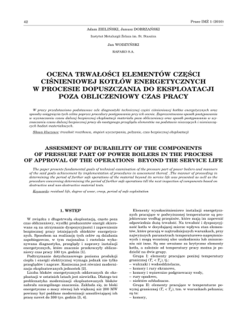 ocena trwałości elementów części ciśnieniowej kotłów