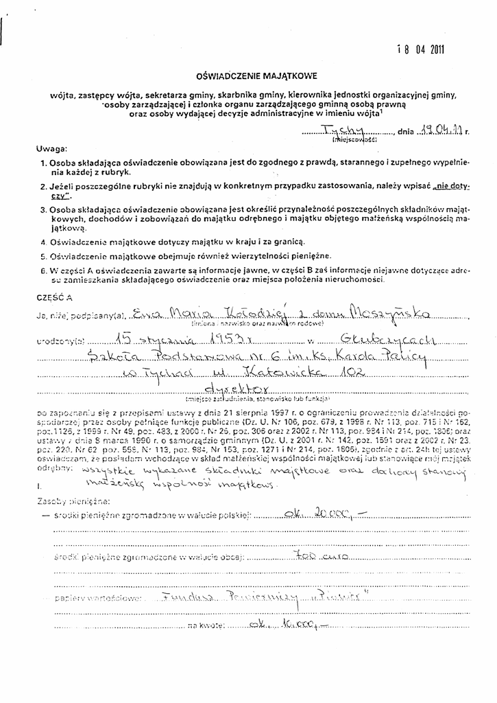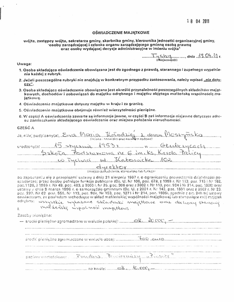 ośWADczENlE MAJĄTKoWE