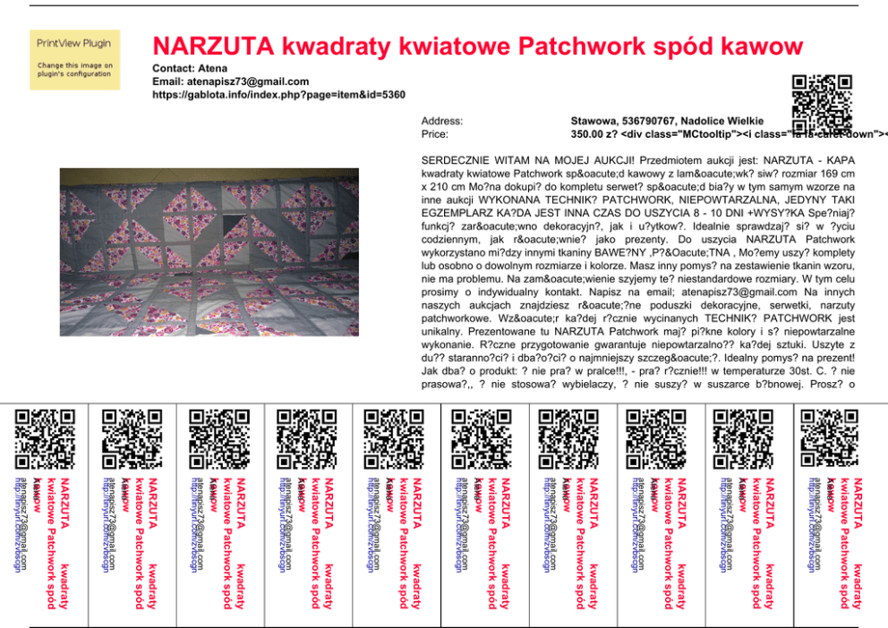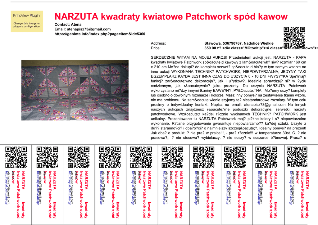 NARZUTA kwadraty kwiatowe Patchwork spód kawow Contact: Atena Email: [email protected] https://gablota.info/index.php?page=item&id=5360 Address: Price: Stawowa, 536790767, Nadolice Wielkie 350.00 z? <div class="MCtooltip"><i class="fa fa-caret-down">< SERDECZNIE WITAM NA MOJEJ AUKCJI! Przedmiotem aukcji jest: NARZUTA - KAPA kwadraty kwiatowe Patchwork spód kawowy z lamówk? siw? rozmiar 169 cm x 210 cm Mo?na dokupi? do kompletu serwet? spód bia?y w tym samym wzorze na inne aukcji WYKONANA TECHNIK? PATCHWORK, NIEPOWTARZALNA, JEDYNY TAKI EGZEMPLARZ KA?DA JEST INNA CZAS DO USZYCIA 8 - 10 DNI +WYSY?KA Spe?niaj? funkcj? zarówno dekoracyjn?, jak i u?ytkow?. Idealnie sprawdzaj? si? w ?yciu codziennym, jak równie? jako prezenty. Do uszycia NARZUTA Patchwork wykorzystano mi?dzy innymi tkaniny BAWE?NY ,P?ÓTNA , Mo?emy uszy? komplety lub osobno o dowolnym rozmiarze i kolorze. Masz inny pomys? na zestawienie tkanin wzoru, nie ma problemu. Na zamówienie szyjemy te? niestandardowe rozmiary. W tym celu prosimy o indywidualny kontakt. Napisz na email; [email protected] Na innych naszych aukcjach znajdziesz ró?ne poduszki dekoracyjne, serwetki, narzuty patchworkowe. Wzór ka?dej r?cznie wycinanych TECHNIK? PATCHWORK jest unikalny. Prezentowane tu NARZUTA Patchwork maj? pi?kne kolory i s? niepowtarzalne wykonanie. R?czne przygotowanie gwarantuje niepowtarzalno?? ka?dej sztuki. Uszyte z du?? staranno?ci? i dba?o?ci? o najmniejszy szczegó?. Idealny pomys? na prezent! Jak dba? o produkt: ? nie pra? w pralce!!!, - pra? r?cznie!!! w temperaturze 30st. C. ? nie prasowa?,, ? nie stosowa? wybielaczy, ? nie suszy? w suszarce b?bnowej. Prosz? o NARZUTA kwadraty kwiatowe Patchwork spód kawow Atena [email protected] http://tinyurl.com/zvbscgn NARZUTA kwadraty kwiatowe Patchwork spód kawow Atena [email protected] http://tinyurl.com/zvbscgn NARZUTA kwadraty kwiatowe Patchwork spód kawow Atena [email protected] http://tinyurl.com/zvbscgn NARZUTA kwadraty kwiatowe Patchwork spód kawow Atena [email protected] http://tinyurl.com/zvbscgn NARZUTA kwadraty kwiatowe Patchwork spód kawow Atena [email protected] http://tinyurl.com/zvbscgn NARZUTA kwadraty kwiatowe Patchwork spód kawow Atena [email protected] http://tinyurl.com/zvbscgn NARZUTA kwadraty kwiatowe Patchwork spód kawow Atena [email protected] http://tinyurl.com/zvbscgn NARZUTA kwadraty kwiatowe Patchwork spód kawow Atena [email protected] http://tinyurl.com/zvbscgn NARZUTA kwadraty kwiatowe Patchwork spód kawow Atena [email protected] http://tinyurl.com/zvbscgn NARZUTA kwadraty kwiatowe Patchwork spód kawow Atena [email protected] http://tinyurl.com/zvbscgn Powered by TCPDF (www.tcpdf.org)