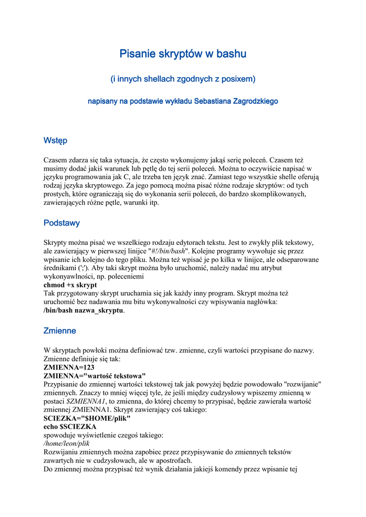 ale zawierający w pierwszej linijce "#!/bin/bash". Kolejne programy wywołuje się przez