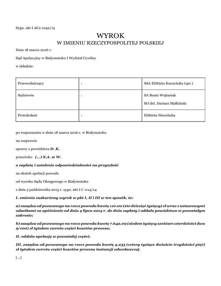 D - Portal Orzeczeń Sądu Apelacyjnego w Białymstoku