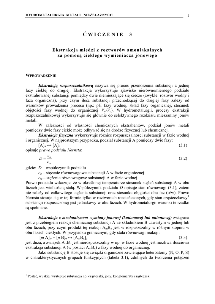 ćwiczenie 3. Ekstrakcja miedzi z roztworów