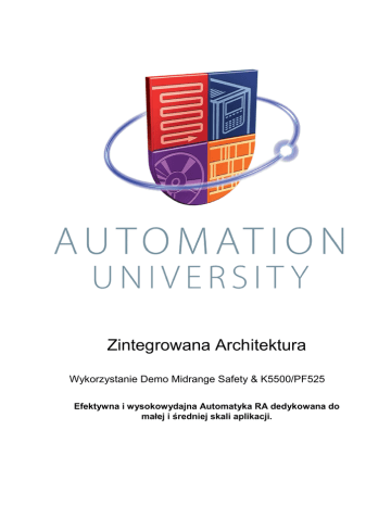Zintegrowana Architektura Wykorzystanie Demo Midrange Safety & K5500/PF525 Efektywna i wysokowydajna Automatyka RA dedykowana do małej i średniej skali aplikacji. AUL04 – Zintegrowana Architektura 16-May-16 Strona 2 of 80 Spis treści SPIS TREŚCI _____________________________ BŁĄD! NIE ZDEFINIOWANO ZAKŁADKI. ZINTEGROWANA ARCHITEKTURA: (90 MINUT) __________________________________ 5 DEFINICJA ZINTEGROWANEJ ARCHITEKTURY? ______________________________ 5 DEFINICJA CONNECTED ENTERPRISE? ____________________________________ 5 PODSTAWY PLATFORMY LOGIX ( 90 MINUT ) ___________________________________ 6 WSTĘP ____ _______________________________________________________ 6 MATERIAŁY ________________________________________________________ 6 KONWENCJA DOKUMENTU _____________________________________________ 8 LAB #1: TWORZENIE PROJEKTU W LOGIX DESIGNER DLA PROCESORA COMPACTLOGIX _ 10 TWORZENIE NOWEGO PROJEKTU ______________________________________ 10 KONFIGURACJA LOKALNYCH WE/WY W PLATFORMIE LOGIX DESIGNER _________ 12 WGRANIE PROJEKTU Z LOGIX DESIGNER PROJECT DO KONTROLERA ____________ 15 KONFIGURACJA ZDALNYCH WE/WY W ETHERNET/IP W PLATFORMIE LOGIX DESIGNER19 KONFIGURACJA PRZEMIENNIKA POWERFLEX Z PANELEM LCD _________________ 27 PRZYWRÓCENIE NASTAW FABRYCZNYCH PRZEMIENNIKA ___ BŁĄD! NIE ZDEFINIOWANO ZAKŁADKI. KONFIGUR PARAMETRÓW SIECI ETHERNET PRZEMIENNIKA ___________________ 32 TEST DOSTĘPNOŚCI ORAZ WERSJI URZĄDZENIA W SIECI ETHERNET _____________ 33 KONFIGURACJA PRZEMIENNIKA POWERFLEX 525 W PLATFORMIE LOGIX DESIGNER _ 34 WGRANIE PROJEKTU Z LOGIX DESIGNER DO KONTROLERA ___________________ 39 NASTAWA PARAMETRÓW PRZEMIENNIKA POWERFLEX ______________________ 40 ASYSTENT ROZRUCHU PRZEMIENNIKA POWERFLEX 525 ______________________ 41 LAB #2: WYKORZYSTANIE MOŻLIWOŚCI APLIKACYJNYCH PLATFORMY LOGIX DO OPTYMALIZACJI TWORZENIA PROJEKTU _____________________________________ 48 DUPLIKACJA URZĄDZEŃ W SIECI ________________________________________ 48 DODAWANIE LOGIKI DRABINKOWEJ W GŁÓWNYM PROGRAMIE _________________ 50 TWORZENIE ZMIENNYCH W KODZIE DRABINKOWYM _________________________ 53 MONITOROWANIE/EDYCJA ZMIENNYCH ___________________________________ 58 IMPORT KODU DO PLATFORMY LOGIX TYPU START / STOP PRZEMIENNIKA. ________ 60 IMPORT INSTRUKCJI TYPU ADD ON. _____________________________________ 62 TWORZENIE ALIASÓW W PLATFORMIE LOGIX DESIGNER ______________________ 67 WGRANIE PROJEKTU Z LOGIX DESIGNER DO KONTROLERA ___________________ 69 KONWERSJA PROGRAMU DO INNEGO TYPU LOGIKI – PRZENOŚNOŚĆ PROGRAMÓW. __ 70 LAB#3: TWORZENIE KOPII PROJEKTU Z PLATFORMY LOGIX DESIGNER NA KARTĘ SD ___ 72 LAB #4 OPCJONALNE: STEROWANIE PRZEMIENNIKAMI POPRZEZ MECHANIZM OKIENEK STEROWNICZYCH FACEPLATES W PLATFORMIE PANELVIEW ______________________ 77 MECHANIZM OKIENEK FACEPLATES DLA POWERFLEX W FACTORYTALK VIEW _____ 77 WGRANIE PROJEKTU Z LOGIX DESIGNER Z IMPLEMENTACJĄ FACEPLATES ________ 77 TEST APLIKACJI Z WYKORZYSTANIEM WALIZKI DEMO ________________________ 79 DODATEK A – OPIS ZMIAN W DOKUMENCIE ________ BŁĄD! NIE ZDEFINIOWANO ZAKŁADKI. AUL04 – Zintegrowana Architektura 16-May-16 Strona 3 of 80 AUL04 – Zintegrowana Architektura 16-May-16 Strona 4 of 80 Zintegrowana Architektura (90 minut) Co to jest Zintegrowana Architektura ? Zintegrowana Architektura to koncept pozwalający na pracę autonomiczną lub integrację w spójnym technologicznie systemie komponentów automatyki. Zintegrowana Architektura to szeroka oferta preintegrowanych komponentów i systemów, których zadaniem jest efektywne wsparcie współczesnego procesu produkcji w różnych branżach przemysłowych. Technologia Zintegrowanej Architektury jest podłożem pod budowę zaawansowanej aplikacji: LOGIX jest Platformą Automatyki opartą o mechanizm identyczny z skalowalnymi kontrolerami w postaci oprogramowania Studio5000 zawierającego Logix Designer. NETLINX jest Platformą Komunikacyjną opartą na Otwartych Sieciach integrujących aplikacje Sterowania, Konfiguracji oraz Zbierania Danych FACTORYTALK jest Platformą Wizualizacjno-Informacyjną. Jest to zunifikowana i skalowalna technologia paneli HMI wykorzystująca wspólną platformę aplikacyjną, a ponadto integruje systemy sterowania oraz zarządcze z procesem produkcyjnym. Zintegrowana Architektura RA zapewnia sterowanie w jednym pakiecie narzędziowym : 1- Funkcjonalność Zdalnego Sterowania : o Globalny Dostęp do Danych o Determinizm systemu sterowania o Zdalna technologia dialogu HMI o Szeroka biblioteka algorytmów zarządzania procesem ( Bloki Funkcyjne ) 2- Elastyczność Programowalnych Kontrolerów : o Zoptymalizowane użytkowanie & diagnostyka z kodem źródłowym w kontrolerze, partym na zmiennych symbolicznych o Zintegrowane Sterowanie napędami Przekształtnikowymi i Serwo o Aplikacje autonomiczne o Skalowalna architektura o Interfejsy do urządzeń RA oraz firm trzecich Co to jest Connected Enterprise ? Connected Enterprise to zestaw technologii umożliwiających dostęp i kapitalizację warstw operacyjnej i biznesowej oraz wymianę skoordynowanych danych w celu maksymalnej optymalizacji procesów produkcyjnych, zarządczych i logistycznych. Zapewnia realizację najbardziej efektywnego wytwarzania wykorzystującego technologię sieci EtherNet ( lub innych protokołów natywnych ) z wykorzystaniem zarządzalnych i niezarządzalnych przełączników sieciowych Stratix. Ćwiczenie warsztatowe wykorzystuje Zarządzalny Przełącznik Stratix z komponentami połączonymi w topologii Device Level Ring, w celu zobrazowania idei Connected Enterprise. AUL04 – Zintegrowana Architektura 16-May-16 Strona 5 of 80 Podstawy platformy Logix (90 min) O ćwiczeniu Celem ćwiczenia jest zobrazowanie elastyczności konfiguracji i sterowania komponentami Zintegrowanej Architektury obejmującymi kontrolery Logix, przemienniki PowerFlex, Zdalne WE/WY „Point I/O” oraz narzędzie PanelView HMI w oparciu o sieć Ethernet/IP. Zadanie polega na konfiguracji “Point I/O