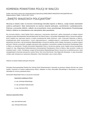 święto wałeckich policjantów - Komenda Powiatowa Policji w Wałczu