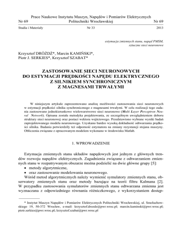 zastosowanie sieci neuronowych do estymacji prędkości napędu