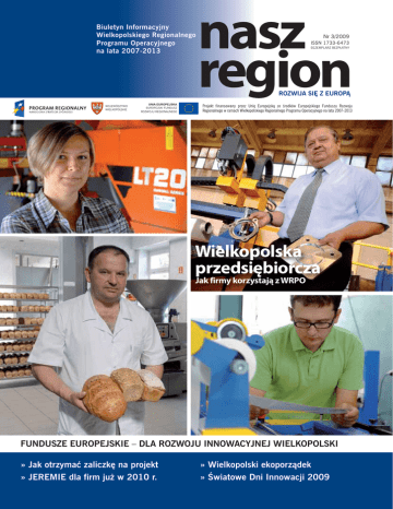 Biuletyn Informacyjny Wielkopolskiego Regionalnego Programu Operacyjnego na lata 2007-2013 nasz region Nr 3/2009 ISSN 1733-6473 EGZEMPLARZ BEZPŁATNY ROZWIJA SIĘ Z EUROPĄ WOJEWÓDZTWO WIELKOPOLSKIE UNIA EUROPEJSKA EUROPEJSKI FUNDUSZ ROZWOJU REGIONALNEGO Projekt finansowany przez Unię Europejską ze środków Europejskiego Funduszu Rozwoju Regionalnego w ramach Wielkopolskiego Regionalnego Programu Operacyjnego na lata 2007-2013 Wielkopolska przedsiębiorcza Jak firmy korzystają z WRPO FUNDUSZE EUROPEJSKIE – DLA ROZWOJU INNOWACYJNEJ WIELKOPOLSKI » Jak otrzymać zaliczkę na projekt » JEREMIE dla firm już w 2010 r. » Wielkopolski ekoporządek » Światowe Dni Innowacji 2009 JEREMIE Nie tylko dotacja ARCHIWUM UMWW Podpisanie umowy (Warszawa, 21 lipca br.). Wicemarszałek Leszek Wojtasiak i prezes zarządu BGK Ireneusz Fąfara ielkopolska po 2 latach przygotowań uruchamia JEREMIE (akronim od Joint European Resources for Micro- to Medium Enterprises). To nowy mechanizm pozadotacyjnego wsparcia mikro-, małych i średnich przedsiębiorstw ze środków Wielkopolskiego Regionalnego Programu Operacyjnego na lata 2007-2013. Pierwsze pożyczki i inne formy finansowania będą udostępniane od 2010 r. W lipcu 2009 r. Zarząd Województwa Wielkopolskiego podpisał z Bankiem Gospodarstwa Krajowego umowę o finansowanie Funduszu Powierniczego JEREMIE. Do 2015 r. Bank, jako menedżer Funduszu Powierniczego, będzie zarządzał kwotą 283 mln zł. Zarząd Województwa nie wyklucza jednak możliwości podwyższenia tej sumy. Następny etap to przygotowanie strategii inwestycyjnej oraz wybór pośredników finansowych (fundusze pożyczkowe i poręczeniowe). Ponadto monitorowane będą wyniki pośredników finansowych i stosowane przez nie instrumenty inżynierii finansowej (mikrofinansowanie, poręczenia i instrumenty kapitału ryzyka). Instrumenty te są tak skonstruowane, by nie naruszyć istniejącej na rynku równowagi finansowania MSP. Wypełnią natomiast lukę w do- W stępie do finansowania zwłaszcza przedsięwzięć prorozwojowych, innowacyjnych oraz firm we wczesnych fazach rozwoju. Bank zakłada możliwość przesuwania środków Funduszu Powierniczego w zależności od potrzeb beneficjentów. Pośrednicy finansowi będą wybrani w pierwszym kwartale 2010 r. Wybór dokonywany będzie cykliczne w konkursach. Informacja o ogłoszeniu konkursu zostanie opublikowana w sposób umożliwiający łatwe dotarcie do niej wszystkim zainteresowanym. Ogłoszenie zawierać będzie m.in. rodzaj projektu (instrumentów inżynierii finansowej), określenie podmiotów mogących ubiegać się o realizację zadań oraz kwotę przeznaczoną na dofinansowanie wniosków. Realizacja projektu zapewni przedsiębiorcom łatwiejszy dostęp do zewnętrznych źródeł finansowania. Odnawialność instrumentów, czyli możliwość ponownego ich udostępniania po wykorzystaniu, utworzy dźwignię finansową, która pozwoli większej liczbie firm pozyskać kapitał na rozwój działalności gospodarczej. Przedsiębiorcy zaczną korzystać z nowych instrumentów wsparcia w drugim kwartale 2010 r. WOJEWÓDZTWO WIELKOPOLSKIE UNIA EUROPEJSKA EUROPEJSKI FUNDUSZ ROZWOJU REGIONALNEGO W numerze: Piekarnia Rogalik w Trzciance, Arbos ze Swarzędza, Agromep z Kościana i Drukarnia Maciaszczyk z Poznania – to przykładowi beneficjenci WRPO. Jak te firmy skorzystały z Funduszy Europejskich? Szanowni Państwo Projekt Akademickich Inkubatorów Przedsiębiorczości, który ma pomagać Wielkopolanom w sprawnym prowadzeniu firm 8 | Dobra zaliczka na ciężkie czasy Jak uzyskać i rozliczyć zaliczkę – na te pytania odpowiada Emilia Dunal, zastępca dyrektora Departamentu Polityki Regionalnej w Urzędzie Marszałkowskim Województwa Wielkopolskiego 10 | Wielkopolska liderem wdrażania RPO Spośród instytucji zarządzających regionalnymi programami operacyjnymi Zarząd Województwa Wielkopolskiego został oceniony najwyżej 12 | Wielkopolski ekoporządek Realizacja projektów z zakresu ochrony środowiska uchroni samorządy od płacenia kar za przekraczanie norm środowiskowych 14 | Aktualności FOT. JANUSZ TATARKIEWICZ Światowe Dni Innowacji 2009 • Nowe konkursy • Euroautobus na dożynkach • Wystawa „Rozwijamy się z Europą” • Nowe autobusy w poznańskim MPK Wśród wszystkich instytucji zarządzających regionalnymi programami operacyjnymi Urząd Marszałkowski Województwa Wielkopolskiego został najlepiej oceniony. Cieszy nas ta pozycja i daje podstawy do zadowolenia. Nadal myślimy przede wszystkim o tym, by projektodawcy byli dobrze poinformowani i nie czekali zbyt długo na wyniki oceny wniosków (tego, niestety, nie da się czasem uniknąć). Niezwykle ważna jest przy tym stabilność zasad normujących system wdrażania programu i ilość dokumentów niezbędnych na etapie konkursu i realizacji projektu. W naszym województwie przyjęliśmy konkretną strategię wdrażania RPO. Stawiamy na jakość projektów, ich efektywność i skalę oddziaływania. To dlatego m.in. realizujemy duże projekty komunikacyjne (np. „Zakup taboru kolejowego dla regionalnych pasażerskich przewozów kolejowych”). Zdecydowaliśmy się też na przystąpienie do inicjatyw JEREMIE i JESSICA, dzięki którym wdrożymy odnawialne instrumenty wspierania firm oraz przedsięwzięć rewitalizacyjnych. Pośpiech w rozdzielaniu Funduszy Europejskich nie ma za wiele wspólnego z planowaniem rozwoju i pobudzaniem konkurencyjności. Pieniądze z UE powinny trafiać do najlepszych, na realizację najbardziej obiecujących przedsięwzięć, które w dłuższej perspektywie będą przynosiły korzyści całemu regionowi. Potrzebna jest więc rozważna ocena projektów. W naszym województwie kontraktacja przebiega sprawnie. Do końca sierpnia 2009 r. do instytucji oceniających projekty wpłynęło prawie 1200 wniosków o dofinansowanie. Wartość wnioskowanego wsparcia z EFRR przekroczyła 2,8 mld zł, a wartość projektów – 4,79 ml