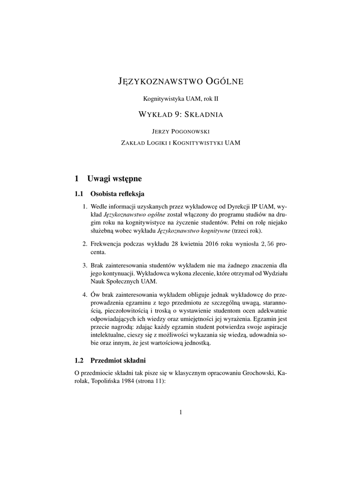1. Wedle informacji uzyskanych przez wykładowc˛e od Dyrekcji IP UAM, wykład J˛ezykoznawstwo ogólne został właczony