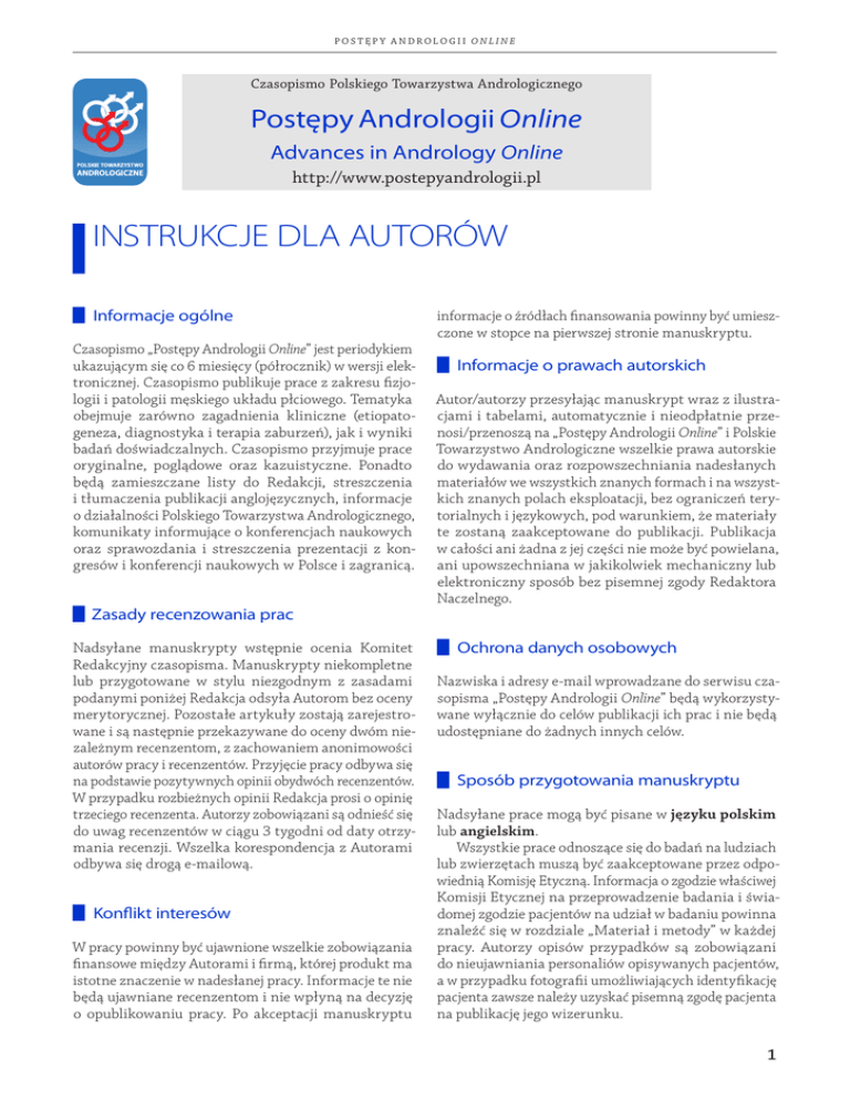 instrukcje dla autorów - postępy andrologii online