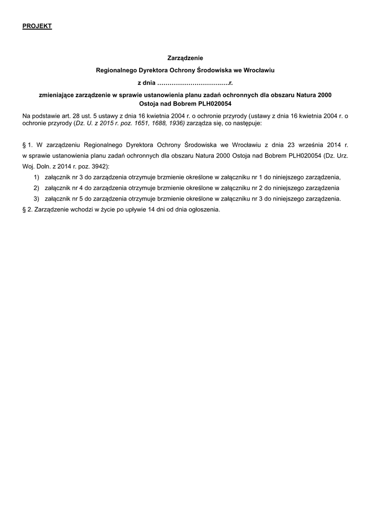PROJEKT Zarządzenie Regionalnego Dyrektora Ochrony