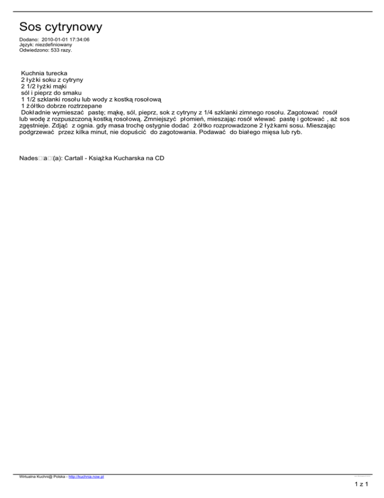 Sos cytrynowy - Wirtualna Kuchnia Polska