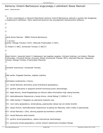 38- akcja Victorii, dośrodkowanie Osipowicza na głowę do Mazurka, który trafia w poprzeczkę.