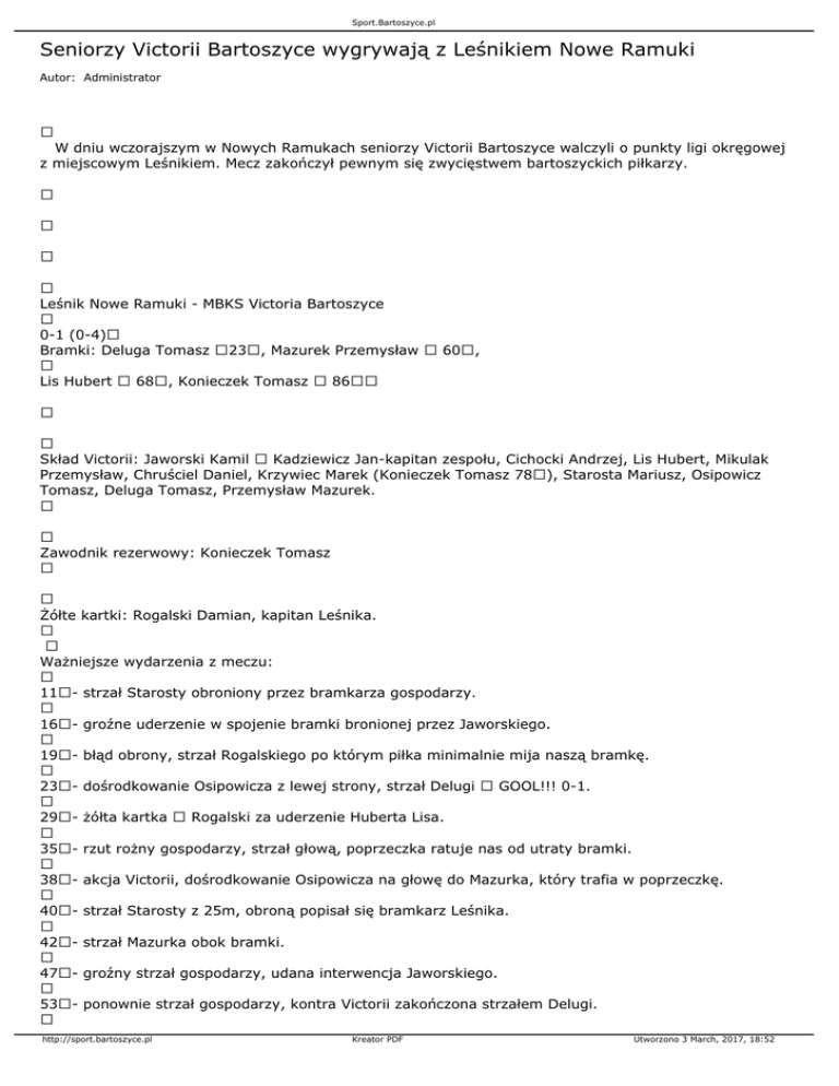 karne oddając strzał, który broni bramkarz, lecz po ponownej dobitce Lisa bramkarz Leśnika bezradny GOOL!!! 0-3.
