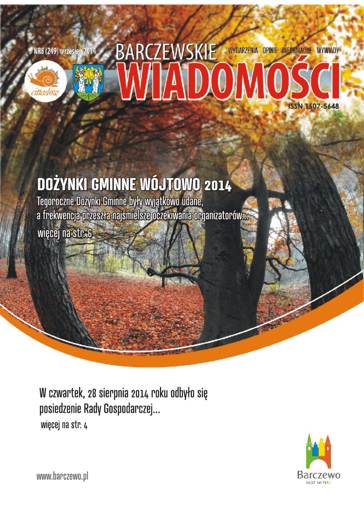 Barczewo doczekało się w końcu gminnego koordynatora sportu. Po wielu bojach i kilku nierozstrzygniętych konkursach od 1 września 2014 roku funkcję opiekuna sportu sprawuje Bartosz Idzikowski. Jak się okazuje młody (23 lata), sympatyczny kawaler, na co dzień mieszkaniec Olsztyna, ze sportem związany był od dziecka. Zresztą wyczynowy sport uprawia do dnia dzisiejszego. Ale po kolei. Bartosz jako 9-latek rozpoczął swoją przygodę ze sportem w Szkole Podstawowej nr 27 w Olsztynie, gdzie królowała piłka ręczna. Szkoła z ogromnymi tradycjami szczypiorniaka. Z powodzeniem kontynuował uprawianie tej dyscypliny. Do drużyny szczypiornistów Warmii Traveland Społem Olsztyn przystąpił na dobre kiedy tuż po wielkim sukcesie (4 miejsce w lidze) zaczął się gorszy okres w dziejach klubu. Na boisku był środkowym rozgrywającym. Ze względu na dwa treningi dziennie oraz pogarszającą się sytuację w klubie zmienił barwy klubowe na Szczypiorniaka Olsztyn. I właśnie w tym klubie kontynuuje swoją sportową pasję. W między- czasie ukończył studia na kierunku - animacja turystki, rekreacji i sportu w Olsztyńskiej Szkole Wyższej. Jak sam mówi już niedługo przystępuje do studiów podyplomowych także związanych ze sportem. Bartosz do Barczewa trafił za sprawą półrocznego stażu w Biurze Informacji Miasta i Gminy Barczewo. Zgłosił się do konkursu na koordynatora sportu i w nim zwyciężył. Z racji bycia zawodnikiem piłki ręcznej Bartosz wskazuje dogodne warunki do uprawiania tej dyscypliny sportu w Barczewie. Okazuje się, że w Olsztynie tylko dwie sale mają pełnowymiarowe boiska do szczypiorniaka - hala Urania (wiecznie zajęta i w coraz gorszej kondycji budowlanej) oraz sala sportowa LO V. Natomiast pełnowymiarowe Kronika policyjna - sierpień - 1 sierpnia w jednym z mieszkań we Wrócikowie amatorka cudzej własności, wykorzystując nieuwagę domowników, przywłaszczyła sobie ich pieniądze: 1.400 złotych oraz 100 euro. Postępowanie w toku. - 3 sierpnia patrol policji został wezwany do Barczewka, gdzie jeden z mieszkańców dokonał samookaleczenia. Rannego mężczyznę próbowało zabrać pogotowie, jednak uniemożliwiał im to całkowicie pijany brat poszkodowanego. W chwilę później ten sam mężczyzna zaatakował policjantów. Szarpał się z nimi, słownie ich znieważył, groził pozbawieniem życia, a także uszkodził im radiowóz. Kiedy wytrzeźwiał opuścił komisariat z 4 zarzutami. - 5 sierpnia w Kronowie miała miejsce kradzież 2.300 złotych z prywatnego mieszkania. Zdarzenie to nastąpiło pod nieuwagę domowników. Kradzież została dokonała przez sprawcę, który często przebywał w mieszkaniu poszkodowanych z uwagi na znajomość z nimi. Postępowanie w toku. - 7 sierpnia na ul. Kopernika w Barczewie amator mocnych wrażeń, po otwarciu oryginalnym kluczykiem Volkswagena Passata, udał się nim na długą i szybką przejażdżkę. Samochód porzucił w stanie uszkodzonym. Najprawdopodobniej kluczyk do samochodu zabrał z mieszkania właściciela samochodu WIADOMOŚCI BARCZEWSKIE 2 Ciąg dalszy na str. 11 i obecnie z pewnością „byłego” już kolegi. - 9 sierpnia nieznany jak dotąd sprawca z łodzi motorowej zacumowanej na jeziorze Dadaj ukradł silnik spalinowy marki Suzuki. Poszkodowany wycenił straty na 1.500 złotych. - 11 sierpnia na ul. Warmińskiej w Barczewie dwóch ustalonych sprawców pobiło innego mężczyznę. Najprawdopodobniej poszło o zawód miłosny, a pokrzywdzony sprowokował całe zdarzenie, które nie powinno mieć w ogóle miejsca. - 11 sierpnia w Nikielkowie ustalony już sprawca wybił dwie przednie szyby w ciągniku Ursus C 330. Poszkodowany wycenił straty na 1.100 złotych. - 11 sierpnia w Kronowie nieustalony jak dotąd sprawca z domu w budowie dokonał kradzieży materiałów budowlanych. W siną dal wyjechały: pustaki i tarcica o łącznej wartości 2.240 złotych. - 13 sierpnia na ul. Olsztyńskiej w Łęgajnach nieustalony sprawca, wypchnął drzwi jednego z garaży i zabrał ze sobą: kosę elektryczną, skrzynki z narzędziami i złom kolorowy. Wartość wszystkich tych rzeczy została wyceniona na 1.340 złotych. - 13 sierpnia na ul. Wojska Polskiego w Barczewie ustalony już mężczyzna, tuż po meczu Pisy Barczewo, obrzucił kamieniami samo- chód marki Opel, należący do kibiców drużyny z Kętrzyna. - 21 sierpnia w Kromerowie, znany ofiarom sprawca, przywłaszczył sobie ich pieniądze (370 złotych) oraz biżuterię o wartości 800 zł. Postępowanie w toku. - 23 sierpnia na ul. Kościuszki w Barczewie młody mężczyzna wybił szyby w oknach 3 mieszkań. Spowodował straty w wysokości 1.100 złotych. Przyczyną tego nagłego zajścia była jego kłótnia z wybranką serca. Sprawca został zatrzymany na gorącym uczynku. - 25 sierpnia na ul. Kościuszki w Barczewie nieznany sprawca wybił szybę w drzwiach wejściowych na klatkę schodową do jednego z budynków. Poszkodowany, Zakład Budynków Komunalnych, wycenił straty na 510 złotych. Postępowanie w toku. - 28 sierpnia na ul. Grunwaldzkiej w Barczewie nieznany sprawca z klatki schodowej jednego z budynków ukradł rower o wartości 700 złotych. - 30 sierpnia w Nikielkowie ustalony już sprawca poprzez kopanie uszkodził drzwi wejściowe jednego z budynków. Krewki karateka spowodował straty w wysokości 2 tysięcy złotych. W sierpniu barczewscy stróże prawa zatrzymali 5 nietrzeźwych kierowców. Zebrał Grzegorz Gawrylczyk Wydanie bieżące i numery archiwalne dostępne są w Biurze Informacji w Barczewie przy ul. Mickiewicza 12 oraz na www.wb.barczewo.pl Redaktor naczelny Mariola Łukowska-Juckiewicz e-mail: [email protected] Redaktor Grzegorz Gawrylczyk Redaktor sportowy Bogdan Caruk Redaktor Lidia Zelman Współpraca: M. Łowkiel-Klimek, A. Hodt, G.Dziekan, E. Mańkowska, J. Połowianiuk, M. Sawicki, M. Mękal, B. Silska, A. Wojszel, Zarzad Stowarzyszenia Wędkarskiego Jeziora Linowskiego w Łegajnach. R