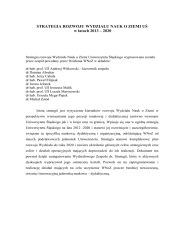 Strategia rozwoju - Wydział Nauk o Ziemi