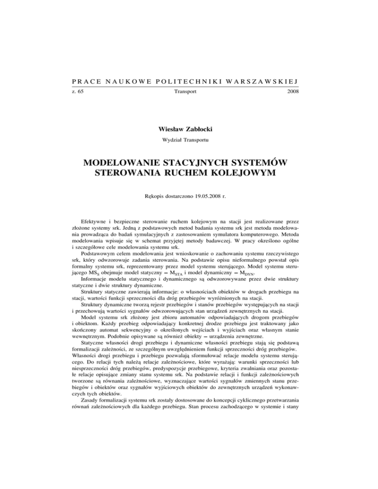 modelowanie stacyjnych systemów sterowania ruchem kolejowym