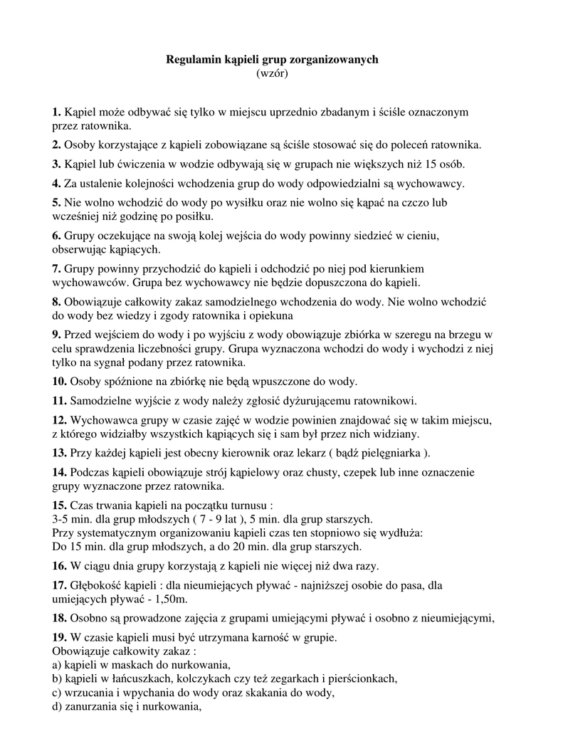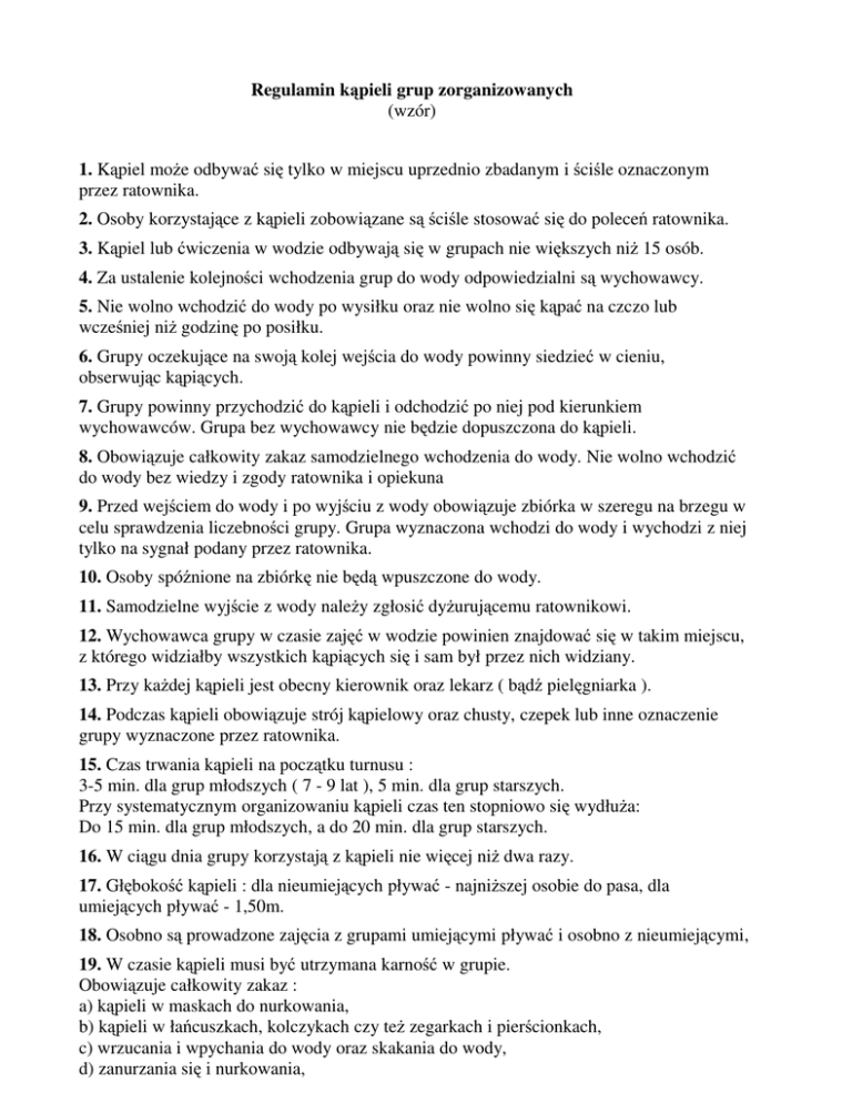 Regulamin kąpieli grup zorganizowanych (wzór) 1. Kąpiel moe