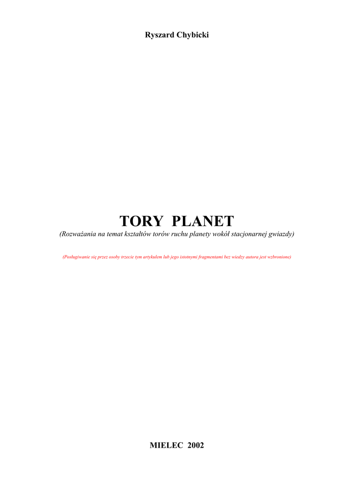 Rozważania na temat torów planet ( )
