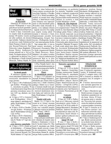 4 Min¹³ tydzieñ WIADOMOCI 4 4 cigali siê na drezynach Eliminacje III otwartych Mistrzostw Wielkopolski w wycigach drezyn rêcznych zgromadzi³y 12 za³óg na dworcu kolejowym w Krobi 13 lipca. Czteroosobowe zespo³y mia³y do pokonania dystans 150 metrów. Liczy³a siê nie tylko szybkoæ, ale równie¿ jego technika. Najlepsza okaza³a siê pierwsza osada Ochotniczej Stra¿y Po¿arnej w Krobi (w sk³adzie: Ryszard Polowczyk, Piotr Polowczyk, £ukasz Bogdañski i Roman Wony). Konkursowy dystans pokonali oni w 34,8 sekundy. Na drugim miejscu (35,49 s), uplasowa³a siê dru¿yna Urzêdu Miejskiego w Krobi (Gerard Misiaczyk, Andrzej Olejnik, Pa- p Z notatnika oficera dy¿urnego Na dwóch gazach W minionym tygodniu w powiecie zatrzymano 4 nietrzewych rowerzystów, mieszkañców naszego powiatu: p 15 lipca o 1:00 w Pudliszkach (gm. Krobia) 59-letniego Jana £., mieszkañca tej gminy. W wydychanym przez niego litrze powietrza stwierdzono zawartoæ 0,99 mg alkoholu (ok. 2,09). p 16 lipca o 9:25 w Gostyniu na ul. Wielkopolskiej 54-letniego Adama S., mieszkañca tej gminy. Wynik badania: 1,52 mg/ l (ok. 3,20). p 16 lipca o 10:50 w Chwa³kowie (gm. Krobia) 50-letniego Jana N. Wynik badania: 0,26 mg/ l (ok. 0,55). p 20 lipca o 20:45 w Skokówku (gm. Borek) 60-letniego Henryka B. Wynik: 0,77 mg/l (ok. 1,62). ...oraz kierowcê samochodu: p 15 lipca o 19:35 w Krobi na ul. Kobyliñskiej 47-letniego Jacka J., mieszkañca Poznania, który kierowa³ Renault Clio. Wynik badania: 0,72 mg/l (ok. NOWA gazeta gostyñska 30/08 we³ Duda, Adam Sarbinowski). Trzecie miejsce wywalczy³a dru¿yna Rady So³eckiej z Chwa³kowa (37,55 s). Wród zawodników znalaz³y siê równie¿ dwie za³ogi kobiece, w sk³ad których wesz³y ¿ony kolejarzy oraz zaprzyjanione ze sob¹ mieszkanki gminy. Wszystkie osady otrzyma³y dyplomy, a trzy najlepsze dru¿yny nagrody rzeczowe.Trzy najlepsze zespo³y wezm¹ udzia³ 10 sierpnia w Jutrosinie w finale. Organizatorami zawodów byli Miêdzygminny Zwi¹zek Turystyczny Wielkopolska Gocinna oraz samorz¹d gminy Krobia. Tego samego dnia i w tym samym miejscu mieszkañcy ul. Dworcowej i Powstañców Wlkp. w Krobi zorganizowali Rodzinny Piknik Dworcowy. Dzieci, m³odzie¿ i ich rodzice rywalizowali w ró¿nych konkurencjach sportowych. By³y m. in. przejazdy ciê¿arówk¹, pokaz sprzê- tu stra¿ackiego, czy grochówka za z³otówkê. Najm³odsi wziêli udzia³ w konkursie rysunkowym pt. Wakacje z kolej¹. Wszystkie prace bêdzie mo¿na niebawem obejrzeæ na wystawie w holu Urzêdu Miejskiego w Krobi. Turniej im. Jana Dopiera³y 13 lipca na boisku w Rokosowie zorganizowano I Turniej Pi³karski im. Jana Dopiera³y, by³ego radnego gminy Poniec i so³tysa wsi. Zawody rozpoczê³y siê po czêci oficjalnej, na któr¹ z³o¿y³a siê msza w miejscowej kaplicy, a tak¿e wizyta na cmentarzu w ¯ytowiecku, gdzie z³o¿ono kwiaty na grobie J. Dopiera³y. W rozgrywkach wziê³y udzia³ cztery dru¿yny. Zwyciê¿y³a Wielkopolanka Szelejewo przed K³osem Rokosowo, Szew¹ Gostyñ i Soko³em Chwa³kowo. Dru¿yny otrzyma³y puchary, medale oraz pi³ki no¿ne. Najlepszym bramkarzem okaza³ siê Wojciech Kubiak (K³os), najlepszym strzelcem Dariusz Kaczmarek (Wielkopolanka). W trakcie turnieju odbywa³ siê te¿ konkurs strzelania z wiatrówki. Wród mê¿czyzn zwyciê¿y³ Daniel Ciesielski, wród kobiet Hanna Jankowska, a wród dzieci Piotr Musialski. Turniej zaszczycili swoj¹ obecnoci¹ w³adze gminy Poniec oraz prezes Okrêgowego Zwi¹zku Pi³ki No¿nej w Lesznie Andrzej Tomkowiak, który odznaczy³ pomiertnie J. Dopiera³ê z³ot¹ honorow¹ odznak¹ Wielkopolskiego Zwi¹zku Pi³ki No¿nej. J. Dopiera³a (1959 2007) od najm³odszych lat pasjonowa³ siê pi³k¹ no¿n¹. By³ zawodnikiem Zjednoczonych Pudliszki, Krobianki Krobia, Piasta Poniec i K³osa Rokosowo. Ogó³em rozegra³ ok. 600 spotkañ pi³karskich. Po zakoñczeniu czynnego uprawiania sportu dzia³a³ spo³ecznie na rzecz sportu. (o-HF) 1,52). Ponadto Jacek J., kierowa³ samochodem pomimo zakazu orzeczonego przez S¹d Rejonowy w Gostyniu. Pijany na skradzionym rowerze 15 lipca o 3:55 policjanci zatrzymali 26-letniego Damiana £., mieszkañca gm. Gostyñ, który tej samej nocy z klatki schodowej jednego z bloków na os. Gawrony w Gostyniu skrad³ rower górski. W chwili zatrzymania Damian £. kierowa³ skradzionym rowerem bêd¹c pod wp³ywem alkoholu. Wynik badania: 1,13 mg/l (ok. 2,38 ). Wandal wybi³ szyby Miêdzy 14 a 15 lipca w Gostyniu na ul. Górnej, nieznany sprawca wybi³ trzy podwójne szyby oraz uszkodzi³ parapety w g³ównym wejciu do pawilonu Waldi. Straty: 1.000 z³. Znaleli z³odziei akumulatorów 15 lipca policjanci ustalili sprawców w³amania do koparki samobie¿nej w Studziannie w kwietniu br. S¹ nimi £ukasz M. i Wojciech P., mieszkañcy gm. Dolsk, którzy skradli wówczas z koparki dwa akumulatory. Straty pokrzywdzony Roman B., mieszkaniec gm. Piaski, wyceni³ na 1.000 z³. Nietrzewy spowodowa³ wypadek 19 lipca ok. 21:20 na drodze Klony Stankowo Gostyñ Stary, kieruj¹cy motorowerem Yamaha 22-letni £ukasz K., mieszkaniec naszego powiatu, zjecha³ na lewy pas i doprowadzi³ do zderzenia z prawid³owo jad¹cym Daewoo Espero. Motorowerzysta by³ nietrzewy 1,26 mg/l (ok. (2,65). Ponadto kierowa³ wbrew zakazowi wydanemu przez S¹d Rejonowy w Gostyniu. Przewieziono go do szpitala. Czterech na jednego 19 lipca ok. 21:00 w Pudliszkach na ul. Fabrycznej czterech mieszkañców gminy Krobia w wieku od 22 do 26 lat, pobi³o 45letniego S³awomira N., mieszkañca Pudliszek. Zadawali mu uderzenia piêciami po ca³ym ciele. Pokrzywdzony dozna³ obra¿eñ w postaci ogólnych pot³uczeñ oraz otaræ naskórka g³owy. Zgin¹³ VW Golf W nocy 17 lipca w Krobi z parkingu przy ul. Harcerskiej, nieznany sprawca skrad³ VW Golfa IV, 1,9 TDI, koloru srebrnego, rok produkcji 2000. Straty: 22.000 z³. Na podstawie serwisu informacyjnego KPP w Gostyniu oprac. HF STRA¯ACKIE INTERWENCJE W minionym tygodniu zanotowano 32 miejscowe zagro
