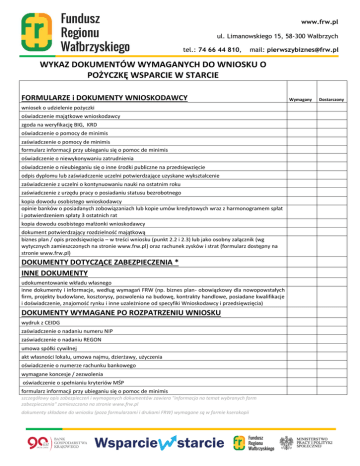 wykaz dokumentów wymaganych do wniosku o pożyczkę wsparcie