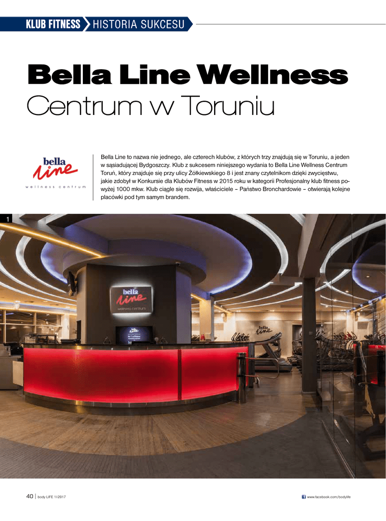 KLUB FITNESS HISTORIA SUKCESU Bella Line Wellness Centrum w Toruniu Bella Line to nazwa nie jednego, ale czterech klubów, z których trzy znajdują się w Toruniu, a jeden w sąsiadującej Bydgoszczy. Klub z sukcesem niniejszego wydania to Bella Line Wellness Centrum Toruń, który znajduje się przy ulicy Żółkiewskiego 8 i jest znany czytelnikom dzięki zwycięstwu, jakie zdobył w Konkursie dla Klubów Fitness w 2015 roku w kategorii Profesjonalny klub fitness powyżej 1000 mkw. Klub ciągle się rozwija, właściciele – Państwo Bronchardowie – otwierają kolejne placówki pod tym samym brandem. 1 40 l body LIFE 1 I 2017 www.facebook.com/bodylife 3 INFORMACJE OSOBOWE: 2 W rozmowie z Panią Magdaleną Woszczyną-Bronchard zadałam pytanie, czym dla klubu z takim doświadczeniem jest profesjonalizm? Uzyskałam odpowiedź: Z definicji wynikałoby, że duże umiejętności i wysoki poziom wykonywanej pracy czynią nas profesjonalistami, po tylu latach w branży powinniśmy wiedzieć, co to dokładnie oznacza. Lecz dla nas profesjonalizm codziennie nabiera innego znaczenia, staje się czymś innym. Być może w wyniku doświadczeń, dzisiaj podeszlibyśmy do tej samej sprawy zgoła inaczej niż kilka lat temu. Które z podejść byłoby bardziej profesjonalne, trudno ocenić… Na pewno fitness biznes uczy nas cały czas pokory, umiejętności słuchania klientów, pracowników i ludzi bardziej doświadczonych od nas. Z drugiej strony profesjonalizm wymaga pragmatyzmu, którego również cały czas nabieramy. Wymagamy od osób z nami współpracujących zaangażowania i chęci stałego rozwoju, sami cały czas staramy się również te kryteria spełniać. Co odróżnia Bella Line od konkurencji? Wszystko wskazuje na to, że jest to połączenie doświadczenia i nowoczesności. Pierwszy klub Bella Line – Studio Rekreacji dla Pań na toruńskiej starówce jest pełnoletni, zaczynał jako mały obiekt ze świetnym kontaktem z klientem, magicz- www.bodylife.com Imię i nazwisko: Magdalena Woszczyna-Bronchard Wiek: No, kobietę pytać? ;) Wejście do branży: 1996 r.– nie, nie pomyliłam się :) Fitness oznacza dla mnie: Odpowiedź to już wyświechtany frazes ;) czyli styl życia: począwszy od strony fizycznej jako osoby lubiącej ruch, środek do życia zapewniający mojej rodzinie byt, poprzez możliwość stałego rozwoju, poznawania nowych ludzi, bycia w miejscu, gdzie cały czas się dużo dzieje. Uważam się za szczęściarę, bo robię w życiu to, co sprawia mi przyjemność i radość, z najbliższą mi osobą – dla jasności mężem :) Mój klub to dla mnie coś niezwykłego, bo…: ...to drugi dom, który sami z mężem od podstaw budowaliśmy i wciąż budujemy. Życzę całej branży fitness: Skuteczności, realizacji założonych planów, bo to, że wiemy, jak coś zrobić, wcale nie oznacza, że to robimy. Żebyśmy jednak się w tym pędzie nie zatracili… ną atmosferą, którą staraliśmy się wprowadzać wraz z zespołem. Właściciele wspominają, jak dzień zaczynał się wcześnie, na recepcji, potem godziny spędzane na sali fitness oraz siłowni, by zakończyć, zamykając klub za ostatnim gościem. Wtedy bliskość klienta pozwalała na rozpoznawanie potrzeb i nawiązywanie bliskich relacji. Teraz, gdy w sieci są cztery kluby, nie ma możliwości, by tak postępować. Jest jednak rozwiązanie – należy dbać, aby ważne dla klubu wartości były podzielane przez pracowników, począwszy od obsługi recepcji, przez trenerów, instruktorów, pracowników wszystkich działów, na paniach sprzątających skończywszy. To miłe, kiedy dostajemy informację od klientów, że mimo iż niektóre z naszych klubów są duże, to nie straciliśmy ani klimatu, ani wyjątkowej, rodzinnej atmosfery – mówi Pani Woszczyna-Bronchard. Dla nas zawsze najważniejszy jest klubowicz – nieważne, czy jest starszy, czy młodszy, grubszy czy chudszy – każdy ma być otoczony taką samą opieką i troską. By temu sprostać, potrzebny jest oczywiście wyjątkowy zespół, grupa osób, które naprawdę lubią ludzi, a także odpowiednie standardy i procedury. Robimy wszystko, by tak było. Kto jest klientem Bella Line? W misji klubu jest zawarte jedno kluczowe zdanie: „każdy, bez względu na wiek”. Klub od początku pozycjonowany jest jako miejsce o wysokim standardzie – lecz nie oznacza to, że jest klubem dla wybranych o najgrubszym portfelu. Głównymi klientami są trzydziesto-, czterdziestolatkowie, jednak w ofercie są także programy skierowane do seniorów, programy dla tych, którzy walczą z otyłością, aktywne 9 miesięcy, oferta dla studentów oraz dla sportowców, np. triathlonistów. Czy Bella Line na Żółkiewskiego to już klub premium? Jeżeli rozumiemy premium głównie w kategorii obsługi klienta i tego, że ma się czuć wyjątkowo i być szczęśliwym – to tak, jesteśmy takim klubem – mówi Pani Magdalena Woszczyna-Bronchard: Właściciele podkreślają, że potrzeby każdego klienta omawiane są kompleksowo przez wyspecjalizowanych doradców w klubie. Klient ma być zadowolony, a nawet bardzo zadowolony z poziomu usług, które otrzyma. Na każdym kroku ma czuć opiekę, widzieć, że zawsze jest przy nim ktoś, kto pomoże zrealizować cel. Ponadto stali klienci chcą być zaskakiwani, a ich oczekiwania stale rosną. Jeśli uda nam się je spełnić, to możemy czuć się klubem premium – ale to do klienta należy ostatnie zdanie – podsumowują z dumą właściciele Bella Line Wellness Centrum. l body LIFE 1 I 2017 41 INFORMACJE O KLUBIE: Rok założenia: 2006 Liczba stałych pracowników: 21 Liczba pracowników nieetatowych: 15 Liczba członków: 2000 + karty partnerskie Całkowita powierzchnia: 2500 mkw. Powierzchnia treningowa: 1100 mkw. Powierzchnia wellness: 250 mkw. Powierzchnia – grupowe zajęcia fitness: 430 mkw. (+ dwa pełnowymiarowe korty do squasha) Położenie (geograficzne): Toruń Adres kontaktowy: Żółkie