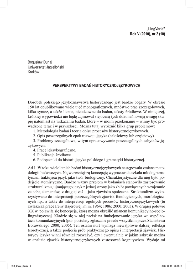 Perspektywy badań historycznojęzykowych - Lingvaria
