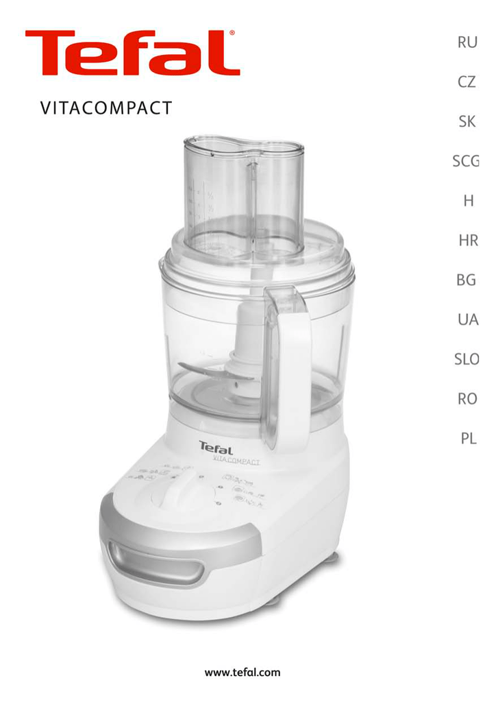 Děkujeme Vám, že jste si vybrali výrobek ze sortimentu firmy TEFAL, který je určen výlučně k přípravě potravin. Bezpečnostní rady - Přečtěte si pozorně návod k použití, dříve než přístroj poprvé použijete: jeho používání v rozporu s návodem by zbavovalo firmu TEFAL veškeré odpovědnosti. - Nikdy nenechávejte přístroj v provozu bez dozoru, zvláště v přítomnosti malých dětí nebo osob se sníženou pohyblivostí. - Ověřte si, zda napájecí napětí vašeho přístroje skutečně odpovídá napětí vaší elektrické instalace. - Jakékoliv chybné zapojení vede k neplatnosti záruky. Váš přístroj je určen výhradně k domácímu použití a to ve vnitřních prostorách domu. - Jakmile přestanete přístroj používat (i v případě výpadku elektrického proudu) nebo v průběhu jeho čištění vždy přístroj odpojte od sítě. - Nepoužívejte svůj přístroj, jestliže nefunguje zcela správně nebo jestliže byl poškozen. V takovém případě se obraťte na smluvní servisní středisko TEFAL (viz seznam v servisní knížce). - Nevkládejte přístroj, přívodní kabel nebo zástrčku do vody ani do jiné kapaliny. - Nenechávejte přívodní kabel viset v dosahu dětí. - Přívodní kabel se nesmí nikdy nacházet v blízkosti teplých částí vašeho přístroje nebo v kontaktu s nimi ani poblíž zdroje tepla a nesmí být ohýbán v ostrém úhlu. - Nepoužívejte svůj přístroj za situace, kdy je poškozen přívodní kabel nebo zástrčka. Abyste se vyhnuli veškerému nebezpečí, zásadně je dávejte na výměnu do smluvního servisního střediska TEFAL (viz jejich seznam uvedený v servisní knížce). - Nepoužívejte přístroj, je-li sestava odšťavovače poškozena. - V zájmu své bezpečnosti používejte pouze příslušenství a díly od firmy TEFAL přizpůsobené pro váš přístroj. - Vždy používejte pěchovače a posunujte potraviny v komíncích jejich prostřednictvím, nikdy k tomuto účelu nepoužívejte prsty, vidličku, lžíci, nůž ani žádný jiný předmět. - Zacházejte s kovovým nožem, nožem mixéru, minimlýnku, drtiče a s kotouči na krájení zeleniny opatrně: jsou mimořádně ostré. Kovový nůž (d1) vyjímejte pouze uchopením za unášeč (c) před tím, než budete z mísy vylévat její obsah. - Nepoužívejte přístroj naprázdno. - Mísu mixéru používejte vždy s víkem. - Nikdy se nedotýkejte pohybujících se částí, se snímáním příslušenství vyčkejte na úplné zastavení. - Nepoužívejte příslušenství jako ukládací nádobu (na zmrazování – pečení – sterilizaci teplem). - Nepřemisťujte přístroj uchopením za zásuvku. 14 Příslušenství, které obsahuje typ, jenž jste si právě koupili, je uvedeno na štítku umístěném na horní části obalu. Popis a a1 a2 b Blok motoru l výstup z bloku motoru přepínač rychlostí: poloha 0-1-2-pulzní chod (přerušovaný) m Redukční převod mlecí hlavy Mlecí hlava Sestava průhledné mísy b1 b2 b3 c m1 m2 m3 m4 dávkovací pěchovač víko s komínkem mísa Tyčka unášeče PŘÍSLUŠENSTVÍ PODLE TYPU: d d1 d2 e m5 m6 m7 kovový nůž plastový hnětač ma : kovová mlecí hlava mb : plastová mlecí hlava tělo šnek nůž mřížky (na mletí masa) - m4-1 : mřížka s malými otvory - m4-2 : mřížka s velkými otvory - m4-3 : mřížka se středními otvory - m4-4 : mřížka s trojúhelníkovými otvory (na mletí zeleniny) matice plošinka pěchovač Kotouče na krájení zeleniny n . A/D : jemné strouhání / jemné krájení (se zpětným chodem) . C/H : hrubé strouhání / hrubé krájení (se zpětným chodem) . E : kráječ na hranolky . G : kráječ na sýr f o Protlačovadlo na sušenky o1 o2 p stojan forma Příslušenství na přípravu kebabu p1 kroužek p2 objímka Kotouč na šlehání g Násypka na plnění klobás Lis na citrusy g1 g2 g3 g4 h kužel filtr sběrná nádržka unášeč q q1 q2 q3 Mísa mixéru h1 h2 h3 i i1 i2 i3 i4 Příslušenství na přípravu protlaků a šťáv dávkovací zátka víko mísa q4 q5 těsnicí spoj šnek filtr q3-1 : filtr na šťávu q3-2 : filtr na protlak kanálek na šťávu kartáček (štětka) Odšťavovač pěchovač víko filtrační vložka filtrační koš j r Stěrka s Ukládací zásuvka Minimlýnek j1 j2 k víko mísa Drtič k1 k2 víko mísa 15 CZ Uvedení do provozu - Před prvním použitím umyjte všechny díly příslušenství teplou mýdlovou vodou (viz odstavec o čištění). Opláchněte a osušte. - Blok motoru položte na rovnou, čistou a suchou plochu. - Přístroj připojte k síti. - Pulzní chod (přerušovaný): otočte knoflík (a2) do polohy pulzní chod, kdy funkce po sobě jdoucích impulsů umožňuje lepší kontrolu nad přípravou. - Spojitý chod: otočte knoflík (a2) do polohy 1 nebo 2. - Zastavení: otočte knoflík (a2) do polohy 0. Číslování odstavců je v souladu s číslováním zobrazení v rámečcích. 1. Nasazení mísy a vík POUŽÍVANÉ PŘÍSLUŠENSTVÍ - Sestava mísy (b). MONTÁŽ PŘÍSLUŠENSTVÍ - Umístěte mísu (b3) na blok motoru (a), přičemž rukojeť mísy směřuje mírně napravo od knoflíku. - Položte víko (b2) na mísu (b3). - Blokujte víko zatlačením vpravo do rukojeti mísy - Zamkněte sestavu tak, že ji jako celek otočíte vpravo Je velmi důležité zablokovat víko na míse dříve, než se celá sestava zamkne na bloku motoru (a). 2. Sejmutí mísy a vík - Odemkněte sestavu tak, že ji jako celek otočíte vlevo. - Odblokujte víko zatlačením vlevo tak, aby se uvolnilo z rukojeti mísy. - Teprve v tomto okamžiku můžete víko nadzvednout a sejmout. 3. MÍCHÁNÍ / MIXOVÁNÍ / MLETÍ / HNĚTENÍ (podle typu) POUŽÍVANÉ PŘÍSLUŠENSTVÍ - Sestava mísy (b). - Tyčka unášeče (c). - Kovový nůž (d1) na mixování a mletí. - Kovový nůž (d1) nebo plastový hnětač (d2) na hnětení nebo míchání (podle ty