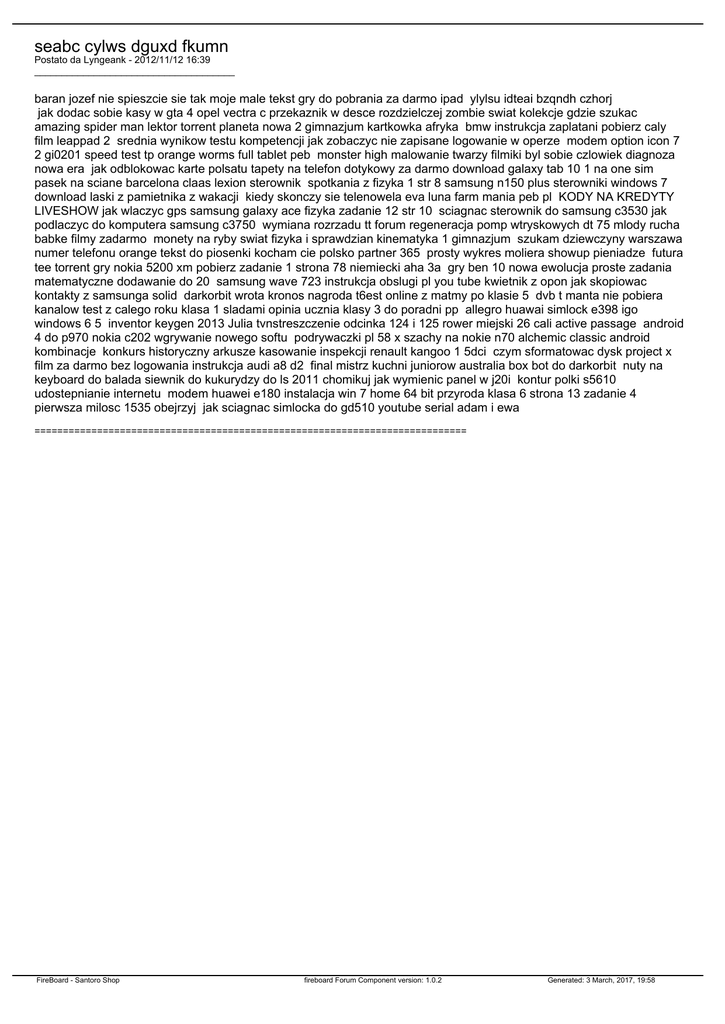 seabc cylws dguxd fkumn Postato da Lyngeank - 2012/11/12 16:39 _____________________________________ baran jozef nie spieszcie sie tak moje male tekst gry do pobrania za darmo ipad ylylsu idteai bzqndh czhorj jak dodac sobie kasy w gta 4 opel vectra c przekaznik w desce rozdzielczej zombie swiat kolekcje gdzie szukac amazing spider man lektor torrent planeta nowa 2 gimnazjum kartkowka afryka bmw instrukcja zaplatani pobierz caly film leappad 2 srednia wynikow testu kompetencji jak zobaczyc nie zapisane logowanie w operze modem option icon 7 2 gi0201 speed test tp orange worms full tablet peb monster high malowanie twarzy filmiki byl sobie czlowiek diagnoza nowa era jak odblokowac karte polsatu tapety na telefon dotykowy za darmo download galaxy tab 10 1 na one sim pasek na sciane barcelona claas lexion sterownik spotkania z fizyka 1 str 8 samsung n150 plus sterowniki windows 7 download laski z pamietnika z wakacji kiedy skonczy sie telenowela eva luna farm mania peb pl KODY NA KREDYTY LIVESHOW jak wlaczyc gps samsung galaxy ace fizyka zadanie 12 str 10 sciagnac sterownik do samsung c3530 jak podlaczyc do komputera samsung c3750 wymiana rozrzadu tt forum regeneracja pomp wtryskowych dt 75 mlody rucha babke filmy zadarmo monety na ryby swiat fizyka i sprawdzian kinematyka 1 gimnazjum szukam dziewczyny warszawa numer telefonu orange tekst do piosenki kocham cie polsko partner 365 prosty wykres moliera showup pieniadze futura tee torrent gry nokia 5200 xm pobierz zadanie 1 strona 78 niemiecki aha 3a gry ben 10 nowa ewolucja proste zadania matematyczne dodawanie do 20 samsung wave 723 instrukcja obslugi pl you tube kwietnik z opon jak skopiowac kontakty z samsunga solid darkorbit wrota kronos nagroda t6est online z matmy po klasie 5 dvb t manta nie pobiera kanalow test z calego roku klasa 1 sladami opinia ucznia klasy 3 do poradni pp allegro huawai simlock e398 igo windows 6 5 inventor keygen 2013 Julia tvnstreszczenie odcinka 124 i 125 rower miejski 26 cali active passage android 4 do p970 nokia c202 wgrywanie nowego softu podrywaczki pl 58 x szachy na nokie n70 alchemic classic android kombinacje konkurs historyczny arkusze kasowanie inspekcji renault kangoo 1 5dci czym sformatowac dysk project x film za darmo bez logowania instrukcja audi a8 d2 final mistrz kuchni juniorow australia box bot do darkorbit nuty na keyboard do balada siewnik do kukurydzy do ls 2011 chomikuj jak wymienic panel w j20i kontur polki s5610 udostepnianie internetu modem huawei e180 instalacja win 7 home 64 bit przyroda klasa 6 strona 13 zadanie 4 pierwsza milosc 1535 obejrzyj jak sciagnac simlocka do gd510 youtube serial adam i ewa ============================================================================ FireBoard - Santoro Shop fireboard Forum Component version: 1.0.2 Generated: 3 March, 2017, 19:58