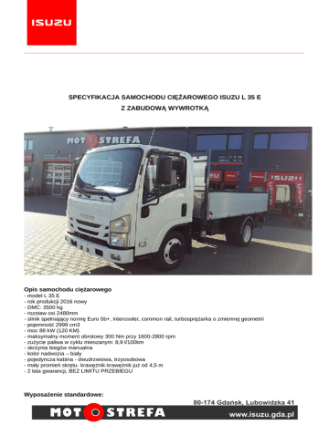 SPECYFIKACJA SAMOCHODU CIĘŻAROWEGO ISUZU L 35 E Z