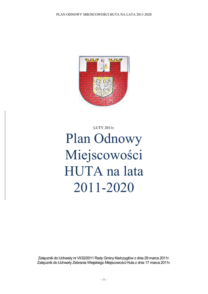 PLAN ODNOWY MIEJSCOWOŚCI HUTA NA LATA 2007