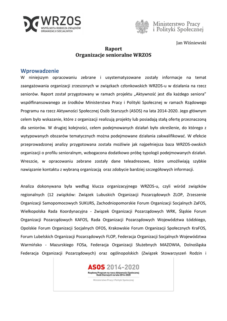 Raport Organizacje senioralne WRZOS, Jan Wiśniewski