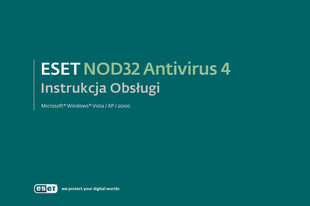 Instrukcja Obsługi Microsoft® Windows® Vista / XP / 2000 ESET NOD32 Antivirus 4 Serdecznie dziękujemy za zakup programu ESET NOD32 Antivirus. ESET NOD32 Antivirus zapewni Ci ochronę przed złośliwym oprogramowaniem, a dzięki technologii ThreatSense program ochroni Cię również przed atakami typu „zero-day”, rozpoznając zagrożenia, na które jeszcze nie opracowano szczepionki. Niniejszy przewodnik przeprowadzi Cię krok po kroku przez instalację i podstawową konfigurację produktu. Zawartość: 1. Instalacja 2. Uruchamianie programu ESET NOD32 Antivirus 4 3. Wprowadzanie nazwy użytkownika i hasła w celu aktualizacji programu 4. Skanowanie zasobów komputera 5. Stan ochrony 6. Tryb standardowy i zaawansowany 7. Rozwiązywanie problemów 8. Informacje kontaktowe Zintegrowane komponenty ESET NOD32 Antivirus ESET NOD32 Antispyware Wykrywa i eliminuje wirusy, trojany, robaki internetowe, rootkity, backdoory i wiele innych zagrożeń. Zapewnia ochronę przed coraz bardziej popularnymi zagrożeniami, takimi jak spyware oraz adware. Interfejs użytkownika Stan ochrony informuje użytkownika o aktualnym poziomie zabezpieczeń komputera. Skanowanie komputera jest kluczowym elementem każdego rozwiązania antywirusowego. Ta zakładka służy do przeprowadzania skanowania plików i folderów na Twoim komputerze. Ta sekcja zawiera ważne informacje na temat aktualizacji programu. Regularnie przeprowadzana aktualizacja jest niezwykle ważna dla zapewnienia maksymalnego poziomu ochrony przed najnowszymi zagrożeniami. Opcje konfiguracji programu ESET NOD32 Antivirus pozwalają szczegółowo dostosować poziom ochrony na Twoim komputerze. Sekcja Narzędzia (dostępna wyłącznie w trybie zaawansowanym) umożliwia dostęp do plików dziennika, kwarantanny i harmonogramu. Pomoc w ESET NOD32 Antivirus. Stąd możesz również bezpośrednio skontaktować się z pomocą techniczną. 1. Instalacja Do poprawnego działania, ESET NOD32 Antivirus wymaga wprowadzenia nazwy użytkownika i hasła dostarczonych przez producenta. Dlatego też przed rozpoczęciem instalacji należy zarejestrować program. 1.1 Rejestracja programu Jeżeli na dołączonym do Twojego programu certyfikacie legalności znajduje się nazwa użytkownika i hasło, możesz pominąć ten punkt i przejść do punktu 1.2. Jeżeli na Twoim certyfikacie znajduje się numer seryjny, oznacza to, iż przed instalacją powinieneś zarejestrować program na stronie internetowej: § Wejdź na stronę http://rejestracja.eset.pl § Rozpocznij proces rejestracji. § Podaj swoje dane oraz numer seryjny znajdujący się na certyfikacie. Zwróć szczególną uwagę, aby podać prawidłowy § adres e-mail. W wyniku rejestracji na podany przez Ciebie adres § e-mail zostanie przesłana Twoja unikalna nazwa użytkownika i hasło. 1.2 Uruchamianie instalatora Przed rozpoczęciem instalacji zamknij wszystkie aktualnie działające programy. Upewnij się, że w Twoim komputerze nie ma zainstalowanego innego programu antywirusowego. Równoległe działanie dwóch programów antywirusowych może spowodować problemy w pracy komputera. Przed uruchomieniem instalatora ESET NOD32 Antivirus upewnij się, że odinstalowałeś wszystkie poprzednie wersje programu ESET NOD32 Antivirus § Typowa – program zostanie zainstalowany z domyślnymi ustawieniami, pytając tylko o podstawowe parametry. Ten poziom jest zalecany dla większości użytkowników. Zaawansowana – ten poziom zezwala na konfigurację § wszystkich zaawansowanych parametrów podczas instalacji. Możesz rozpocząć instalację programu ESET NOD32 Antivirus z płyty CD lub z pliku pobranego ze strony www.eset.pl Aby uruchomić instalator, należy zastosować się do poniższych wskazówek: § Jeśli instalujesz program z płyty CD, włóż ją do napędu CD-ROM. W nowootwartym oknie wybierz Zainstaluj ESET NOD32 Antivirus. Instalacja rozpocznie się automatycznie. § Jeśli instalujesz program z pliku pobranego ze strony internetowej, kliknij na niego dwa razy w celu uruchomienia instalatora. Po uruchomieniu instalatora oraz zaakceptowaniu Umowy Licencyjnej, dostępne będą do wyboru dwa typy instalacji: Naciśnij DALEJ, aby przejść do kolejnego kroku. 1.3 Wprowadzanie nazwy użytkownika i hasła 1.4 Technologia ThreatSense. Net Wprowadź nazwę użytkownika i hasło podane na certyfikacie lub przesłane e-mailem po rejestracji programu. Należy wprowadzać dane starannie z uwzględnieniem małych/wielkich liter i znaków dodatkowych. Wprowadzenie nazwy użytkownika i hasła jest niezbędne do prawidłowego działania programu. Jeśli wolisz wprowadzić nazwę użytkownika i hasło później, zalecamy zrobienie tego bezpośrednio po zakończeniu instalacji. Technologia ThreatSense.Net pozwala stale ulepszać ochronę Twojego komputera poprzez automatyczne przesyłanie nowych zagrożeń do analizy w laboratoriach firmy ESET. Zalecamy, aby pozostawić włączony system monitorowania zagrożeń ThreatSense.Net. Naciśnij DALEJ, aby przejść do kolejnego kroku. Naciśnij DALEJ, aby przejść do kolejnego kroku. 1.5 Wykrywanie niepożądanych aplikacji 1.6 Zakończenie instalacji Potencjalnie niepożądane aplikacje to programy mogące posiadać funkcje, których istnienia nie jesteś świadomy i których możesz nie chcieć w swoim komputerze (np. narzędzia zdalnego dostępu). Wybierz opcję Włącz wykrywanie potencjalnie niepożądanych aplikacji, jeżeli nie korzystasz z niestandardowych programów, co zablokuje tego typu oprogramowanie, zapewniając Ci pełne bezpieczeństwo. Naciśnij przycisk Instaluj. Etap instalacji będzie widoczny na pasku postępu. Po zakończeniu instalacji ESET NOD32 Antivirus zostanie uruchomiony automatycznie. Nie jest wymagane ponowne uruchomienie komputera. ESET NOD32 Antivirus jest od razu gotowy do pracy, zapewniając ochronę Twojego komputera. Naciśnij DALEJ, aby przejść do kolejnego kroku. 2. Uruchamianie ESET NOD32 Antivirus 4 ESET NOD32 Antivirus
