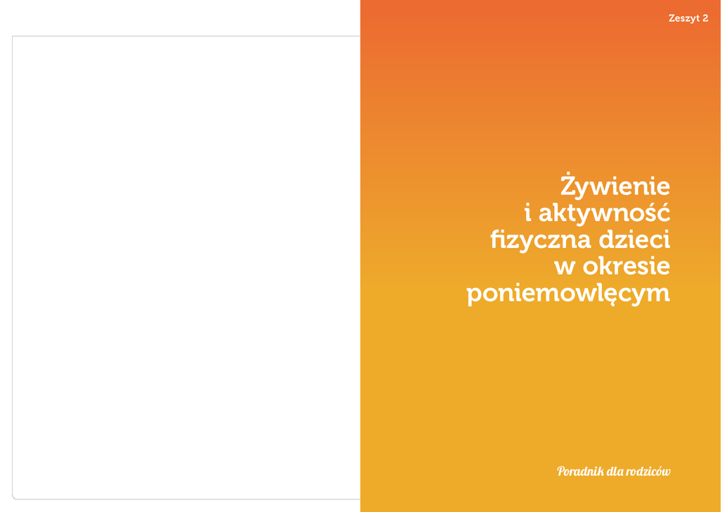 Zeszyt 2 Żywienie i aktywność fizyczna dzieci w okresie poniemowlęcym Poradnik dla rodziców Spis treści Żywienie i aktywność fizyczna dzieci w okresie poniemowlęcym Żywienie dzieci w okresie poniemowlęcym – wzorce, potrzeby, trudności* Wskazówki praktyczne 54 Halina Weker, Marta Barańska, Małgorzata Strucińska Jak karmić małe dziecko Jakie są najczęstsze błędy w żywieniu dzieci Dziecko z problemem nadmiaru lub niedoboru masy ciała – jak postępować Wprowadzenie 55 psychomotorycznego Jakie są zachowania żywieniowe małego dziecka Karmienie piersią – wciąż ważne 55 55 56 Podstawy żywienia 96 97 57 Rola aktywności ruchowej dzieci w wieku poniemowlęcym (1–3 lata) 57 Umiejętności motoryczne 97 58 Potrzeby 98 62 Rola zabawy w rozwoju aktywności ruchowej 98 69 Rady dla rodziców Jakie są potrzeby żywieniowe dziecka w okresie poniemowlęcym Modelowy talerz żywieniowy – jak planować posiłki dla dziecka Jakie produkty należy wykorzystywać w żywieniu dzieci Jaka powinna być wielkość porcji różnych produktów w diecie małego dziecka Aktywność ruchowa dziecka – czas wspólnej zabawy Maria Jodkowska, Anna Oblacińska, Marta Barańska 52 Przykładowe jadłospisy i wybrane przepisy 76 77 Jakie są umiejętności dziecka w wieku 2–3 lata – charakterystyczne cechy rozwoju 75 75 75 Ile posiłków i jakich powinno otrzymać dziecko w ciągu dnia Jak prawidłowo ułożyć dietę dziecka Zasady sporządzania posiłków dla dzieci * Skrócona i uaktualniona wersja poradnika dotyczącego żywienia dzieci w wieku 13–36 miesięcy życia (Instytut Matki i Dziecka, 2012). 72 72 74 101 53 Żywienie dziecka w okresie poniemowlęcym Żywienie dzieci w okresie poniemowlęcym – wzorce, potrzeby, trudności Wprowadzenie Jakie są umiejętności dziecka w wieku 2–3 lata – charakterystyczne cechy rozwoju psychomotorycznego Rozwój każdego dziecka, niezależnie od różnic indywidualnych, charakteryzuje ciągłość, powtarzalność tych samych etapów rozwojowych oraz zależność osiągania różnych sprawności w procesie uczenia się od dojrzałości i gotowości układu nerwowego. Przeciętne dziecko w okresie poniemowlęcym: osiąga sprawność chodzenia i konsekwentnie ją doskonali; manipuluje różnymi przedmiotami, sprawdza ich właściwości; potrafi się bawić, chętnie inicjuje zabawę i szuka partnera do różnych aktywności; wykazuje potrzebę samodzielnej aktywności, np. przy jedzeniu, ubieraniu się; ma dużą potrzebę poznawczą, jest ciekawe otaczającego je świata; potrafi się komunikować z otoczeniem za pomocą słów lub prostych zdań i stale poszerza zakres słownictwa oraz umiejętność swobodnego mówienia; lubi naśladować dorosłych, obserwuje ich zachowania i chętnie odwzorowuje; jest zmienne emocjonalnie, skłonność do śmiechu i płaczu występuje naprzemiennie; przejawia zachowania charakterystyczne dla naturalnego w tym okresie rozwo jowym etapu przekory i negatywizmu. Jakie są zachowania żywieniowe małego dziecka Okres pomiędzy 2. a 3. rokiem życia dziecka jest krytyczny pod względem rozwoju określonych preferencji i nawyków żywieniowych. Charakterystyczna dla tego etapu rozwojowego ciekawość poznawcza dziecka odnosi się także do sytuacji związanych z jedzeniem. Dziecko nie tylko przygląda się podawanym mu przez rodziców różnym daniom, ale także dotyka ich i smakuje. 55 Żywienie dziecka w okresie poniemowlęcym 56 Odczucia dziecka związane z rozpoznaniem nowego smaku i jego akceptacja nie dokonuje się automatyczne. Zdarza się, że np. dwulatek odrzuca proponowaną potrawę z uwagi na „inne” niż dotychczas doznania smakowe – złości się i wypluwa jedzenie. Część matek w takiej sytuacji wycofuje się z podawania nowej potrawy. Tymczasem najlepszym rozwiązaniem jest stopniowe oswajanie dziecka z nowym smakiem oraz cierpliwe i konsekwentne zachęcanie go do spróbowania symbolicznej łyżeczki. Pozytywny efekt widoczny jest po kilkunastu próbach – dziecko zazwyczaj samo otwiera buzię przed następną porcją. Dziecko w okresie poniemowlęcym potrafi już dobrze porozumiewać się z otoczeniem, radzi sobie także w prostej samoobsłudze oraz w próbach samodzielnego jedzenia. Zdaje sobie także sprawę, że płacz i krzyk są skutecznym sposobem na osiąganie swojego celu, jakim jest np. uzyskanie od rodzica ulubionej przekąski, deseru, słodkiego napoju. Dlatego czasem pożądane są zmiany w tym, czego dziecko się nauczyło, ponieważ wzory postaw i zachowań utrwalone w pierwszych latach życia dziecka mają tendencję do przetrwania, bez względu na to, czy są korzystne, czy niekorzystne. W kształtowaniu prawidłowych nawyków żywieniowych u dziecka i praktyk rodzicielskich związanych z żywieniem dziecka istotna jest nie tylko cierpliwość i konsekwencja rodziców, ale także ustalenie przez nich czytelnych dla dziecka zasad odnoszących się do sytuacji jedzenia (karmienia), co jest niezbędne przy realizowaniu zaleceń żywieniowych. Karmienie piersią – wciąż ważne Dziecko powinno być karmione piersią co najmniej do około 12. miesiąca życia. Karmienie piersią może być kontynuowane w 2. i 3. roku życia, tak długo, jak sobie tego życzy matka i dziecko. Nie ustalono górnej granicy wieku, do której dziecko może być karmione naturalnie. Podstawy żywienia Jakie są potrzeby żywieniowe dziecka w okresie poniemowlęcym W żywieniu dzieci zwrócić należy szczególną uwagę na częstość spożywania posiłków i ich organizację, dobór produktów w diecie, wartość energetyczną i odżywczą oraz nawyki i zachowania żywieniowe. Właściwa organizacja posiłków podawanych dziecku w ciągu dnia zapewnia równomierną podaż energii, a także częściowo zapobiega błędom żywieniowym. Małe dzieci powinny otrzymywać w ciągu dnia 4–5 posiłków: 3 większe i 1–2 mniejsze. Dzieci młodsze w 2. roku życia niekiedy wymagają wię