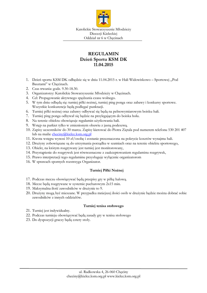 REGULAMIN Dzień Sportu KSM DK 11.04.2015