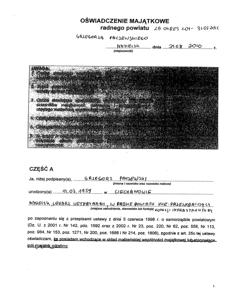 OŚWIADCZENIE MAJĄTKOWE