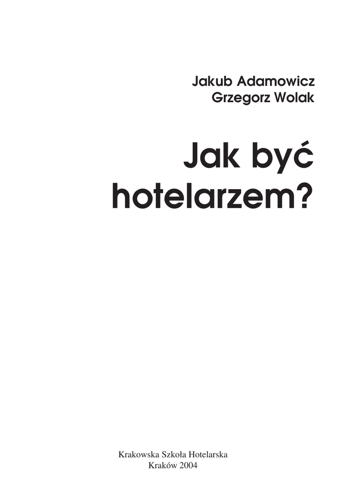 —1— Jakub Adamowicz Grzegorz Wolak Jak być hotelarzem? Krakowska Szkoła Hotelarska Kraków 2004 JAK BYĆ HOTELARZEM? —2— Recenzja: Zygmunt Kruczek Jerzy Raciborski Korekta tekstu: Barbara Moskal Wydawca: Krakowska Szkoła Hotelarska, 31−531 Kraków, ul. Wincentego Pola 4, tel./fax (0−12) 428−24−50 Wydawnictwo „PROKSENIA”, 31−047 Kraków, ul. Sarego 23/2, tel./fax (0−12) 421−63−80 —3— Spis treści Wstęp .......................................................................................................................... 5 „Albergologia”, czyli wiedza o hotelarstwie ............................................................ 7 Etyka w hotelarstwie ............................................................................................... 13 Krótka historia hotelarstwa. Rys historyczny kształtowania się usług i pojęć hotelarskich ............................................................................................. 19 Baza noclegowa w Polsce i jej rozwój na tle turystyki ................................................ 24 Krótki poradnik dla starających się o dofinansowanie działań w turystyce ..... 26 Użyteczne adresy ............................................................................................... 29 Rady dotyczące sprzedaży usług hotelarskich ...................................................... 31 Kilka słów o usłudze hotelarskiej ........................................................................... 43 Jakość – analiza i kryteria – trochę teorii ............................................................. 47 Sposób obiektywizacji oceny jakości usługi hotelarskiej ..................................... 49 Terminologia ISO 8402 ........................................................................................... 51 Jak rodziła się kategoryzacja i standaryzacja w polskim hotelarstwie .............. 53 Funkcjonowanie i procedury służb hotelowych .................................................... 85 Funkcjonowanie oraz procedury recepcji hotelowej .................................................... 85 Funkcjonowanie oraz procedury organizacji pracy hotelowej służby pięter ............... 92 Bardzo ważna osoba w hotelu – VIP ................................................................ 95 Śniadania hotelowe ...................................................................................................... 96 Wybrane terminy i definicje stosowane w hotelarstwie ....................................... 99 Zalecana literatura ................................................................................................ 103 Załączniki ............................................................................................................... 107 Praktyczny Kodeks Postępowania ............................................................................. 109 Zasady arbitrażu IHA/UFTAA ........................................................................ 117 Konwencja o odpowiedzialności osób utrzymujących hotele za rzeczy wniesione przez gości hotelowych ....................................................................... 154 Regulamin hotelowy .................................................................................................. 158 Dyrektywa Rady o podróżach, wycieczkach turystycznych i wakacjach sprzedawanych w formie pakietu usług ................................................................ 159 Zalecenie Rady dotyczące bezpieczeństwa pożarowego w istniejących hotelach ..... 167 Ustawa z 5 marca 2004 r. o zmianie ustawy o usługach turystycznych oraz o zmianie ustawy – Kodeks wykroczeń ................................................................ 177 —4— JAK BYĆ HOTELARZEM? Decyzja komisji w sprawie procedur wprowadzania w życie dyrektywy Rady 95/57/WE – w sprawie zbierania informacji statystycznych w dziedzinie turystyki ........................................................................................... 191 Wyciąg z ustawy Prawo budowlane z 7 lipca 1994 r. ................................................ 223 Ustawa z 11 marca 2004 r. o podatku od towarów i usług ......................................... 227 Narodowy program przygotowania do członkostwa w Unii Europejskiej ................. 228 Statut Polskiej Izby Hotelarstwa ................................................................................ 232 Statut Polskiego Zrzeszenia Hoteli ............................................................................ 237 Zakończenie ............................................................................................................ 249 Schlussbemerkungen ............................................................................................. 250 Conclusion .............................................................................................................. 251 —5— WSTĘP Podejmując pracę nad przygotowaniem niniejszego opracowania, zastanawialiśmy się, w jaki najbardziej przystępny sposób przybliżyć przyszłym hotelarzom problematykę jako− ści, zachęcić do pogłębienia wiedzy oraz umiejętności „bycia hotelarzem w zjednoczonej Europie”. Jesteśmy członkami Unii Europejskiej! W jaki sposób my, hotelarze, jesteśmy tego świadomi? Czy jesteśmy przygotowani do nowych wymagań jakościowych? Czy znamy dokładnie własne, rodzime tradycje świadczenia usług hotelarskich? Na łamach tej pracy staraliśmy się zebrać i przedstawić materiał odnoszący się do po− wstania oraz rozwoju pojęć jakości i standardów w hotelarstwie. Zdajemy sobie sprawę, że przedstawiony przez nas zbiór materiału nie jest z gruntu rzeczy wyczerpujący, ani doskonały. Pragniemy jednak przyczynić się do wypełnienia luki w naszej literaturze hotelarskiej, oddając niniejszą pracę szczególnie w ręce słuchaczy szkół hotelarskich. Pojęcie kategorii, standardu, j