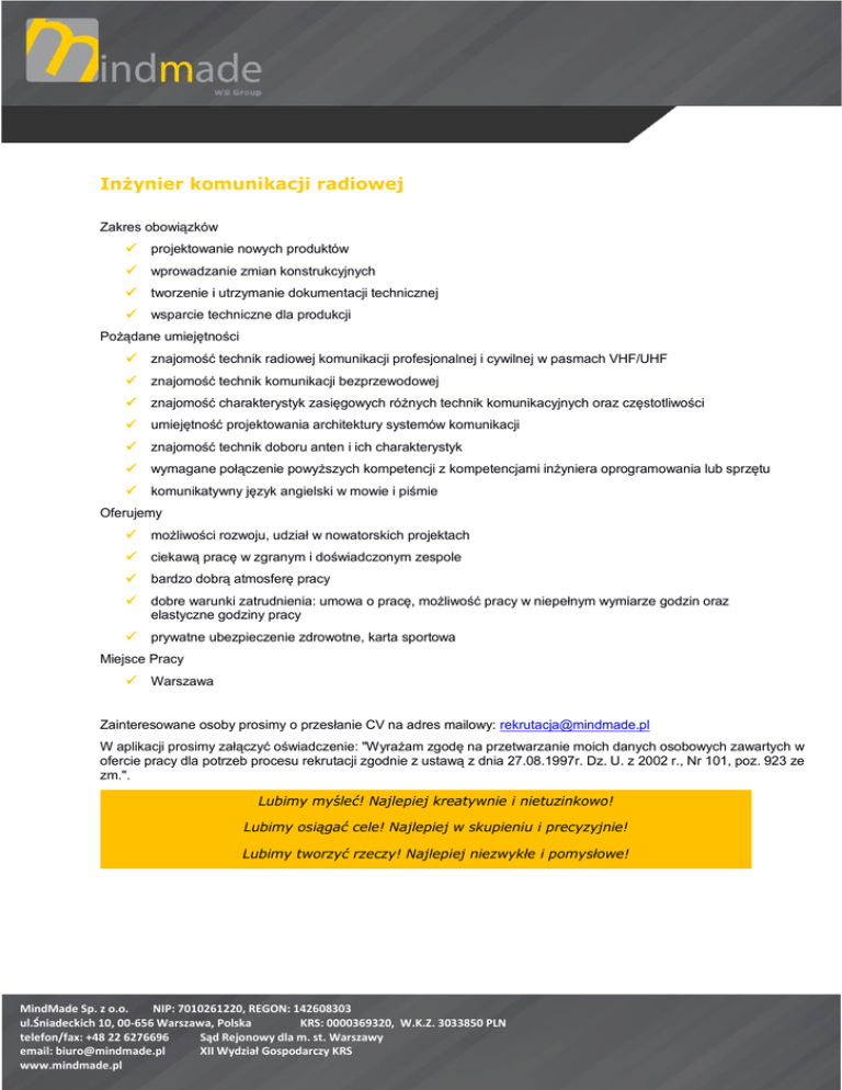 Oferta Pracy Inżynier Oprogramowania