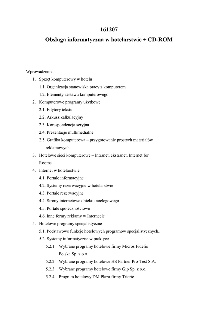 161207 Obsługa informatyczna w hotelarstwie + CD-ROM