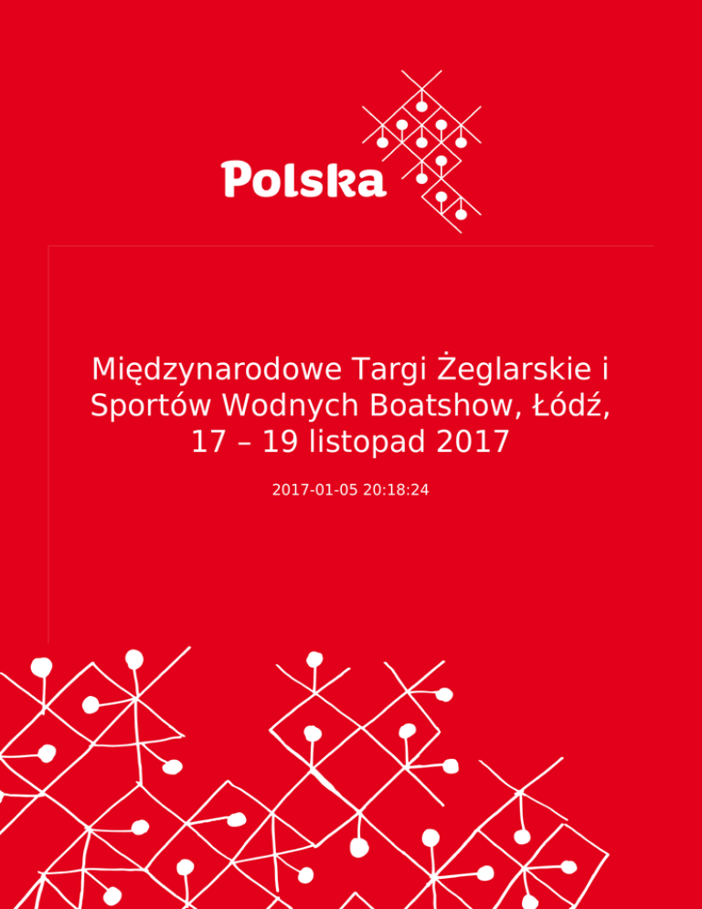 Międzynarodowe Targi Żeglarskie i Sportów Wodnych Boatshow, Łódź, 17 – 19 listopad 2017 2017-01-05 20:18:24 2 Zapraszamy serdecznie do wzięcia udziału w XIX edycji Targów Żeglarstwa i Sportów Wodnych, które odbędą się w dniach 17 – 19 listopada 2017 roku w Łodzi. www.boatshow.pl BOATSHOW 2017 Międzynarodowe Targi Żeglarskie i Sportów Wodnych Boatshow to najważniejsze branżowe wydarzenie odbywające się jesienią w Polsce. Co roku w Łodzi prezentowane są luksusowe łodzie motorowe, pełnomorskie jachty żaglowe, housboat’y oraz jachty do turystyki śródlądowej. Dziewiętnasta edycja Boatshow odbędzie się w dniach 17 – 19 listopada 2017. Podczas targów pokazane zostaną premierowe konstrukcje polskich producentów oraz motorówki z największych stoczni jachtowych na świecie. W targach Boatshow wezmą udział między innymi wystawcy z Polski, Chorwacji, Włoch, Niemiec, Grecji, Łotwy, Ukrainy oraz Szwecji. W ich ofercie znajdzie się także osprzęt i elektronika jachtowa, odzież sportowa oraz czartery i szkolenia. Targi Boatshow od wielu lat stanowią platformę spotkań dla przedsiębiorców rozpoczynających handel na polskim rynku oraz tych, którzy poszukują parterów i podwykonawców. Polska jest drugim po USA producentem łodzi motorowych do 10 metrów na świecie. Rok rocznie krajowe stocznie produkują około 22 tysięcy konstrukcji pływających, a 95 procent z nich sprzedawanych jest na rynki zagraniczne. Polskie jachty żaglowe i motorowe są popularne w Niemczech, Wielkiej Brytanii, basenie Morza Śródziemnego, USA, Japonii i Australii. Większość z polskich stoczni prezentuje nowe propozycje właśnie podczas targów Boatshow. Według raportu „Polski Rynek Żeglarski” około 3,4 miliona Polaków miało w swoim życiu styczność z żeglarstwem, a 540 tysięcy osób aktywnie uprawia ten sport. Z kolei Polska Izba Przemysłu Jachtowego i Sportów Wodnych szacuje, że „największa część polskiej produkcji to łodzie, których cena mieści się w przedziale 20-150 tys. euro. Średnia wartość produkowanego w Polsce jachtu wynosi 50-60 tys. euro, a najdroższe jachty sprzedawane są za ceny przekraczające 11 milionów euro”. Boatshow 2016 w liczbach: 7157 zwiedzających z kilkunastu krajów: Wielkiej Brytanii, Bułgarii, Czech, Grecji, Litwy, Łotwy, Norwegii, Niemiec, Rosji, Serbii, Ukrainy, Włoch, Stanów Zjednoczonych oraz Izraela 149 wystawców z Polski, Grecji, Chorwacji, Litwy, Włoch, Ukrainy, Niemiec, Szwecji 104 konstrukcje pływające – premiery jachtów żaglowych i motorowych 65% zwiedzających zadeklarowało, że zamierza dokonać zakupów w najbliższym roku 55% zwiedzających jest zainteresowana dodatkowym wyposażeniem i akcesoriami 40% zwiedzających posiada jacht Wiecej informacji na : www.boatshow.pl 3