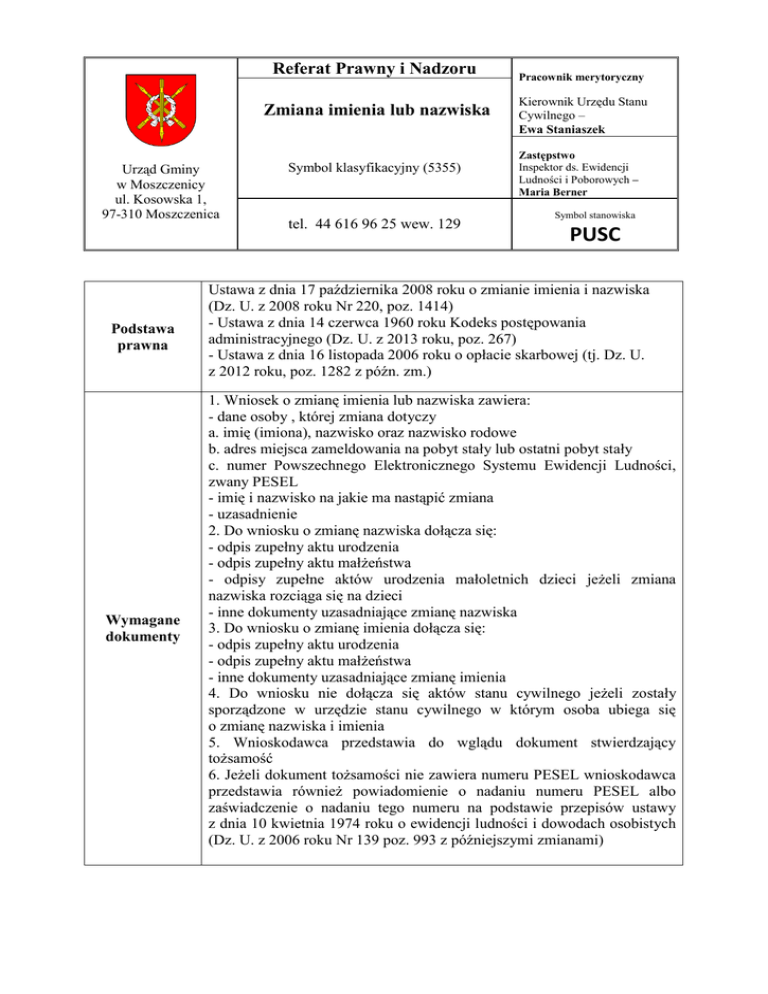 Referat Prawny i Nadzoru Zmiana imienia lub nazwiska