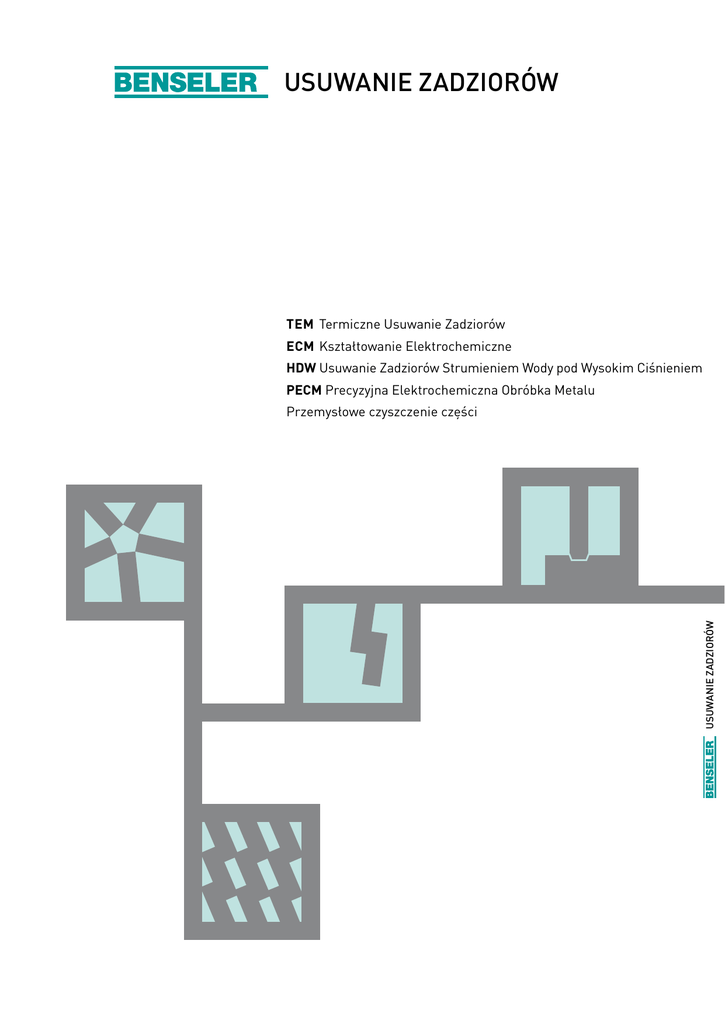 USUWANIE ZADZIORÓW TEM Termiczne Usuwanie Zadziorów ECM Kształtowanie Elektrochemiczne HDWUsuwanie Zadziorów Strumieniem Wody pod Wysokim Ciśnieniem PECM Precyzyjna Elektrochemiczna Obróbka Metalu USUWANIE ZADZIORÓW Przemysłowe czyszczenie części Usuwanie zadziorów przez firmę Benseler zapewnia idealną precyzję SPECJALIZACJA INNOWACJA SYNERGIA JAKOŚĆ Nasza nazwa od ponad 30 lat jest synonimem specjalizacji w obszarze usuwania zadziorów i kształtowania elektrochemicznego. Jako główne zadanie postawiliśmy przed sobą usuwanie zadziorów z wymagających części, przy czym stosujemy najnowocześniejsze metody, które zapewniają największe bezpieczeństwo procesów i ekonomiczność. Nasze doświadczenie w roli specjalistów od usuwania zadziorów wykorzystujemy w czterech lokalizacjach poprzez sprawdzone techniki, które można dostosować do najróżniejszych materiałów i części. Oprócz usuwania zadziorów właściwego dla poszczególnych materiałów można również skorzystać z naszej wiedzy z zakresu powlekania powierzchni. Jako partner doradzający chętnie udostępniamy naszą wiedzę od projektowania części po rzeczywiste usuwanie zadziorów. Konsekwentnie szukamy przy tym coraz lepszych rozwiązań i chętnie podważamy istniejące metody, aby rozwinąć nowe. Pragniemy, by mogli Państwo sprawdzić naszą wiedzę - jesteśmy fachowi, dyskretni i elastyczni. Usługa usuwania zadziorów Benseler oznacza syntezę jakości, synergii i siły innowacji, która rozwinęła się w zaangażowanej i pełnej zaufania współpracy z naszymi klientami i partnerami. TEM Termiczne usuwanie zadziorów ZAKRESY ZASTOSOWANIA Metodę termicznego usuwania zadziorów stosuje się wszędzie tam, gdzie jakość usuwania zadziorów istotnie wpływa na działanie części lub gdzie należy zastąpić prace przy usuwaniu zadziorów powodujące wysokie koszty. METODA Ta metoda powoduje, że wszystkie zadziory znajdujące się na obrabianym detalu są spalane w komorze usuwania zadziorów, wypełnionej mieszanką tlenu i gazu palnego. Spalanie zadziorów odbywające się bez zdzierania obrabianego detalu na powierzchni części, trwa tylko kilka milisekund, dzięki czemu obrabiane detale rozgrzewają się tylko nieznacznie. Jakość usuwania zadziorów, w szczególności całkowitą stabilizację wszystkich krawędzi zadziorów, określamy z jednej strony przez objętość gazu, a z drugiej przez proporcję mieszanki tlenu i gazu palnego. Decydujące znaczenie dla efektu ma przy tym optymalna konstrukcja ewentualnie wymaganych urządzeń do usuwania zadziorów. KORZYŚCI przed po - zadziory są usuwanie jednocześnie ze wszystkich miejsc usuwania znajdujących się na obrabianym detalu - bardzo duże bezpieczeństwo procesu - korzenie zadziorów są zaklejane ECM Kształtowanie Elektrochemiczne ZAKRESY ZASTOSOWANIA Metoda kształtowania elektrochemicznego jest doskonale przystosowana do precyzyjnej obróbki krawędzi oraz cięcia otworów w dokładnie ustalonych miejscach. Technika ta umożliwia nam ponadto wprowadzanie nowych kształtów geometrycznych i konturów na powierzchnię obrabianego detalu, np. wydrążenia i cofnięcia powierzchni. METODA Wióry na podłączonym anodowo obrabianym detalu są tą metodą precyzyjnie likwidowane w sposób elektrolityczny. KORZYŚCI przed po - brak termicznego i mechanicznego obciążenia części - precyzyjna obróbka na określonych powierzchniach - brak zadziorów wtórnych - niezależność od stopu i struktury - niezależność od grubości wióra i właściwości - przystosowanie również do urządzeń do odlewania, wyciskania i kucia obróbka kształtowa wydrążenia HDW usuwanie zadziorów strumieniem wody pod wysokim ciśnieniem ZAKRESY ZASTOSOWANIA Usuwanie zadziorów strumieniem wody pod wysokim ciśnieniem jest przystosowane w szczególności do obrabianych detali z metalu lekkiego. W tej metodzie usuwa się wyłącznie wodą zadziory w miejscach, w których inne metody osiągają swoje ograniczenia techniczne i ekonomiczne. METODA Strumień wody sterowany przez CNC jest kierowany pod ciśnieniem 1000 barów na obrabiane miejsca detalu. W ten sposób d ocieramy również do trudno dostępnych przecięć i otworów. Przy tym wysoka energia kinetyczna strumienia wody szybko i niezawodnie zrywa nie tylko wióry na obrabianych krawędziach, ale usuwa również drzazgi i inne zanieczyszczenia przyczepione do części. KORZYŚCI - usuwanie wiórów, drzazg i oczyszczanie w jednym kroku roboczym - precyzyjne docieranie i usuwanie zadziorów w wyznaczonych miejscach - przystosowana również do większych detali (odcinki przesunięcia: x = 300 mm, y = 300 mm, z = 600 mm) przed po PECM Precyzyjna Elektrochemiczna Obróbka Metalu ZAKRESY ZASTOSOWANIA Metodą PECM można bardzo dokładnie w krótkim czasie obrabiać metale niezależnie od ich grubości – z zachowaniem wysokiej jakości części i zmniejszeniem kosztów produkcji w porównaniu do tradycyjnych metod. METODA PECM to rozwinięta wersja ECM. W tym procesie elektrochemicznym materiały są rozbijane bezdotykowo przy zastosowaniu katody oscylującej. PECM jest przystosowana do małych i dużych serii oraz do wykonywania prototypów. WŁAŚCIWOŚCI PROCESÓW ECM / PECM - bezdotykowa obróbka bez oddziaływania termicznego i mechanicznego - obróbka bez zadziorów - brak zużycia katody pod wpływem procesu - szorstkość do Rz 0,2 / Ra 0,05 (w zależności od materiału) - dokładność odtworzenia < 20 µm - obróbka utwardzonych części - czas taktu skalowany przez konstrukcję urządzenia Przykład obróbki powierzchni struktury detalu Przemysłowe czyszczenie części i analiza czystości wg VDA 19 ZAKRESY ZASTOSOWANIA Czyszczenie ma na celu poprawę sprawności, jakości i żywotności wymagających komponentów i podzespołów, na przykład układów hydraulicznych, hamulcowych lub wtryskowych. METODA Czyszczenie części odbywa się w zamkniętej wielokomorowej inst