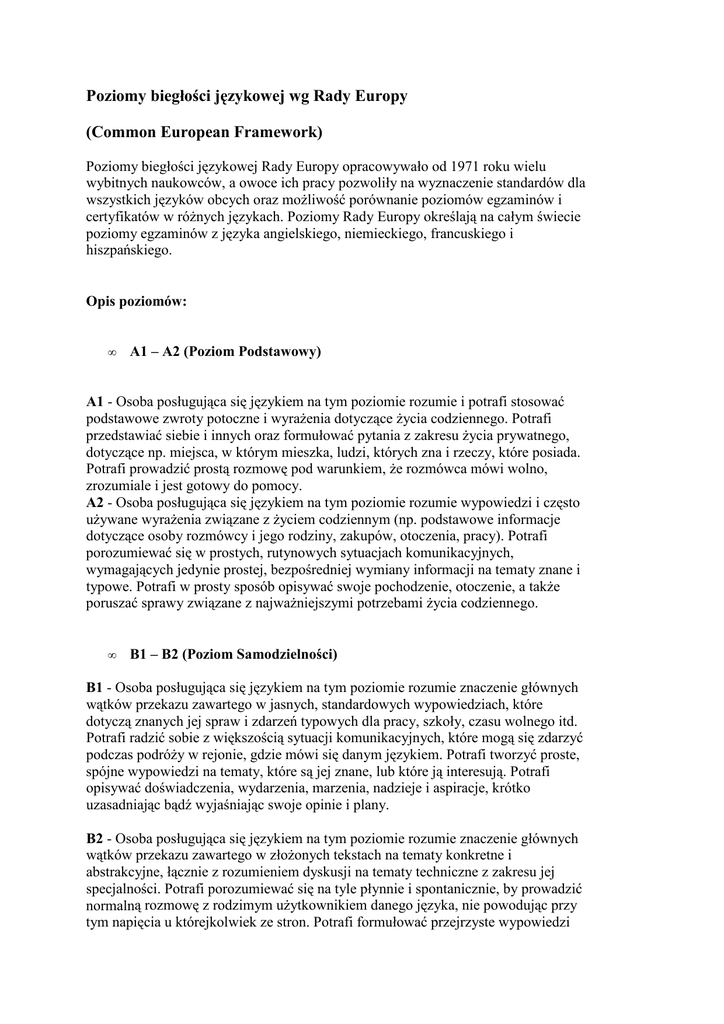 Opis poziomów biegłości językowej