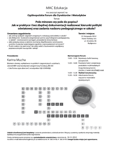 21 listopada 2012 Hotel Holiday Inn ul. Grodzka 36 Bydgoszcz 16.11.2012