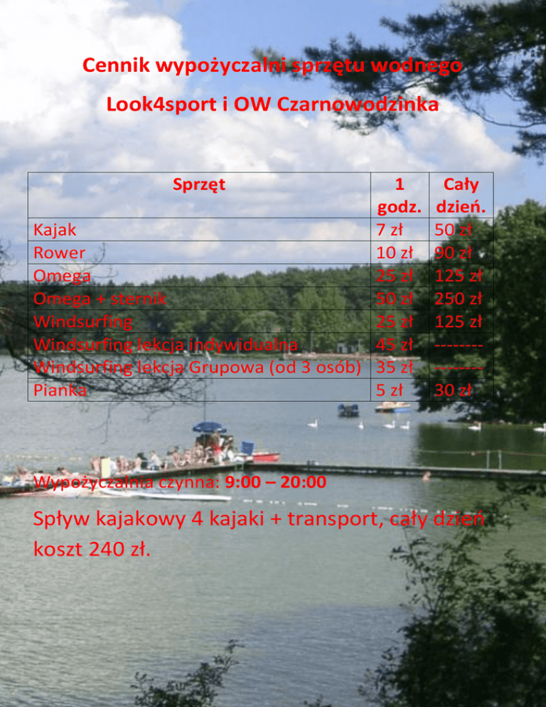 Cennik wypożyczalni sprzętu wodnego Look4sport i OW