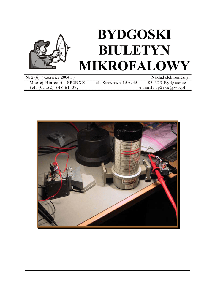 BYDGOSKI BIULETYN MIKROFALOWY Nr 2 (6) ( czerwiec 2004 r ) Maciej Białecki SP2RXX tel. (0...52) 348-61-07, Nakład elektroniczny. ul. Stawowa 15A/45 85-323 Bydgoszcz e-mail: [email protected] Bydgoski Biuletyn Mikrofalowy nr 2 (6) - (czerwiec 2004 r.) SPIS TREŚCI: 1. Aktualności, nowości, wydarzenia. 2. Podstawy techniki mikrofalowej: 2.1 Własności mikrofal; 2.2 Propagacja mikrofal. 3. Porady techniczne: 3.1 Band plan 2300 - 2450 MHz; 3.2 Tranzystory stosowane w konwerterach TV-Sat starszego typu. 4. Dział techniczny: 4.1 Kalibrator na pasmo 3 cm; 4.2 Układy MMIC – 1 część; 4.3 10 GHz wideband transceiver FM – 3 część; 4.4 Antena szczelinowa. 5. Sprzęt: 5.1 Konwerter TV-Sat SDE 8232TA; 5.2 Radar Doppler’owski. 6. Ogłoszenia. ____________________________________________________________________________________________________________ Maciej Białecki SP2RXX ul.Stawowa 15A/45 85-323 Bydgoszcz tel. (052) 348-61-07, e-mail: [email protected] 2 Bydgoski Biuletyn Mikrofalowy nr 2 (6) - (czerwiec 2004 r.) 1. AKTUALNOŚCI, NOWOŚCI, WYDARZENIA: 1.1 Ultraniskoszumowe wzmacniacze operacyjne 1,6 GHz z wyjściami i wejściami rail-to-rail. LT6200-10 i LT6200-5 to ultraniskoszumowe wzmacniacze operacyjne zawierające wejścia i wyjścia rail-to-rail. LT6200-10 oferuje pasmo 1,6 GHz i slew-rate 450V/us. Gwarantuje stabilną pracę przy wzmocnieniach 10V/V i większych. Dla LT6200-5 szerokość pasma wynosi 800 MHz, a slew-rate 250 V/us. Układ pracuje stabilnie przy wzmocnieniach 5 V/V i większych. Dla obu wzmacniaczy poziom szumów wejściowych wynosi zaledwie 0,95nV/√Hz przy 100 kHz. LT6200-10 i LT6200-5 są jedynymi na rynku wzmacniaczami o tak dużej szybkości działania i tak małym poziomie szumów, pracującym z pojedyńczym lub symetrycznym napięciem zasilania już od 2,7 V do 12,6 V. Większość odpowiedników wymaga symetrycznego napięcia zasilania i cechuje się znacznie węższym zakresem zmienności napięć wejściowych i wyjściowych. Ważniejsze parametry: - zawartość harmonicznych: - 80 dB przy 1 MHz i RL=100 Omów, - wejściowe napięcie niezrównoważenia: maks. 1 mV, - wydajność prądowa: min. 60 mA, - wejściowy prąd szumów: 3,5 pA/√Hz, - pobór prądu w stanie shutdown: maks. 1,8 uA. LT6200-10 i LT6200-5 nadają się idealnie do zastosowań jako niskoszumowe przedwzmacniacze w niskonapięciowych systemach kondycjonowania sygnałów, gdzie jest wymagany szeroki zakres dynamiczny – w diagnostyce medycznej, optoelektronice i systemach komunikacyjnych. Są wykonywane w obudowach SOT23-6 i SOIC-8 na przemysłowy i komercyjny zakres temperatur. http://www.linear.com 1.2 Nowy bikon w pasmie 3 cm. Na początku lipca 2003 roku, na terenie posesji Jerzego SP3GEM doszło do uruchomienia bikona w paśmie 3 cm, o znaku SR3XHR. Konstruktorem bikona jest Roman DJ6EP. Urządzenie pracuje z mocą 100 mW i dookólną anteną. Na początku byly to tylko testy, i nie została ustalona dokładna częstotliwość pracy. ____________________________________________________________________________________________________________ Maciej Białecki SP2RXX ul.Stawowa 15A/45 85-323 Bydgoszcz tel. (052) 348-61-07, e-mail: [email protected] 3 Bydgoski Biuletyn Mikrofalowy nr 2 (6) - (czerwiec 2004 r.) 1.3 Anteny szczelinowe URSA i ORION. Firma AB rozpoczela sprzedaż anten URSA i ORION przeznaczonych do urządzeń zewnętrznych smartBridges (2,4 GHz). Obydwie wykorzystują zjawisko rezonansu fali elektromagnetycznej w falowodzie i promieniowanie przez odpowiednio ułożone szczeliny, co w efekcie daje anteny o dużym zysku energetycznym i solidnej budowie, odporne na różne warunki atmosferyczne. Obydwie polecane są do budowy radiowego systemu dostępu do internetu w paśmie 2,4 GHz o dużym zasięgu działania. URSA jest to antena dookólna szczelinowa przeznaczona do stacji bazowych. Dzięki dużemu zyskowi energetycznemu daje możliwość podłączenia dużej ilości klientów z jednego access pointa. ORION to z koleji antena sektorowa szczelinowa przeznaczona do stacji bazowych. Dzięki dużemu zyskowi energetycznemu i podzieleniu horyzontu na 3 sektory zapewnia optymalne wykorzystanie pasma radiowego i możliwość podłączenia dużej ilości klientów z jednej stacji bazowej. www.ab.pl 1.4 Na zdjęciu kolega Jurek SP9FG podczas prób odbicia sygnału od gór. 1.5 Nowy system do pomiaru natężenia pól elektromagnetycznych. Firma Rohde&Schwarz oferuje system pomiarowy EMCE (Electromagnetic Compatibility in the Environment), przeznaczony do pomiaru natężenia pól elektromagnetycznych. Całość mieści się w zwykłym plecaku i cechuje się bardzo prostą obsługą dzięki zautomatyzowanym procedurom ____________________________________________________________________________________________________________ Maciej Białecki SP2RXX ul.Stawowa 15A/45 85-323 Bydgoszcz tel. (052) 348-61-07, e-mail: [email protected] 4 Bydgoski Biuletyn Mikrofalowy nr 2 (6) - (czerwiec 2004 r.) pomiarowym. System TS-EMF może być przydatny między innymi operatorom sieci telekomunikacyjnych, dostawcom wszelkiego typu usług bezprzewodowej transmisji danych i instytucjom rządowym. Obejmuje przenośny analizator widma, czujnik równokierunkowy (izotropiczny) oraz oprogramowanie do pomiaru i analizy danych. Zakres analizowanych częstotliwości od 80 MHz do 2,5 GHz pokrywa większość konwencjonalnych serwisów radiowych, w tym GSM, CDMA, UMTS, Bluetooth, DECT i WLAN, jak również rozgłośnie radiowe i telewizyjne. Pomiary odbywają się selektywnie, dzięki czemu można określić zarówno ogólny poziom natężenia pól, jak też zmierzyć i porównać natężenia pól odpowiadające poszczególnym serwisom radiowym. Uzyskane wyniki pomiarów mogą być przechowywane w formacie plików Excela lub ASCII i prezentowane na ekranie w postaci danych numerycznych lub diagramu. http://rohde-schwarz.com 1.6 Analizator widma 2395 (9 kHz – 26,5 GHz). Firma IFR-Aeroflex wprowadziła na ryn