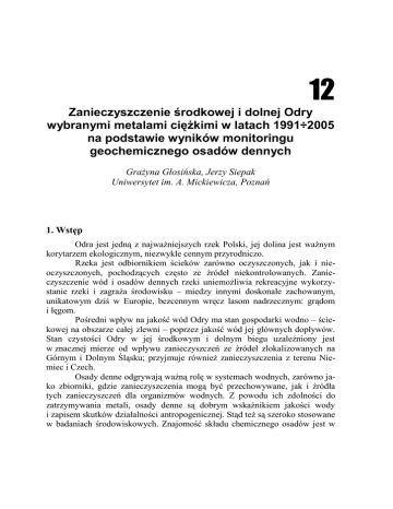 Zanieczyszczenie środkowej i dolnej Odry wybranymi metalami
