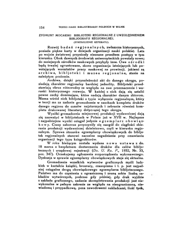 154 TRZECI ZJAZD BIBLJOTEKARZY POLSKICH W WILNIE ZYGM UNT MOCARSKI BIBLJOTEKI REGJONALNE Z UWZGLĘDNIENIEM BIBLJOGRAFJI REGJONALNEJ. (STRESZCZENIE REFERATU). Rozwój b a d a ń r e g j o n a l n y c h , zwłaszcza historycznych, posiada piękne karty w dziejach organizacji nauki polskiej. Lata po wojnie światowej przyniosły nieznane przedtem postępy w tym kierunku. Obok dawnych środowisk uniwersyteckich powstały nowej do mniejszych ośrodków naukowych przybyły inne. Owe o ś r o d k i będą trwalej ugruntowane, skoro organizacja istniejących lub po wstających warsztatów pracy naukowej na prowincji, jakiemi są a r c h i w a , b i b l j o t e k i i m u z e a r e g j o n a l n e , stanie na należytym poziomie. Archiwa, dzięki przynależności akt do danego okręgu, po siadają charakter regjonalny bardziej jednolity. Bibljoteki przed stawiają obraz różnorodny ze względu na swe przeznaczenie i wa runki historycznego rozwoju. W każdej z nich dają się ustalić pewne cechy dominujące, które nadają charakter danym zbiorom. Niema wśród nich bibljoteki o typie wyłącznie regjonalnym, który w teorji ma za zadanie gromadzenie w zasobach kompletu druków danego regjonu do czasów najstarszych i zebranie również kom pletu drukowanej literatury dotyczącej tego okręgu. Wysiłki gromadzenia miejscowej produkcji wydawniczej dają się zauważyć w bibijotekach w Polsce już w XVII w. Najlepsze i najpełniejsze wyniki osiągał jedynie e g z e m p l a r z o b o w i ą z k o w y . Czasy zaborcze przyczyniły się naogół do ciągłości zbie rania produkcji wydawniczej dzielnicowo, czyli w kierunku regjo nalnym. Sprawa stosunku egzemplarzy obowiązkowych do bibljo tek regjonalnych stanowi naczelne zagadnienie przy omawianiu organizacji tego typu księgozbiorów. W roku bieżącym została wydana n o w a u s t a w a z dn. 18 marca o bezpłatnem dostarczaniu druków dla celów bibljotecznych i urzędowej rejestracji (Dz. U. Rz. P., 1932, Nr. 33, poz. 347). Oczekujemy ogłoszenia rozporządzenia wykonawczego. Dyskusja w sprawie egzemplarzy obowiązkowych staje się aktualna. Gromadzenie wszelkich wytworów graficznych myśli ludz kich w kształcie książki, broszury, czasopisma i t. p. jest najpeł niej osiągalne drogą obowiązkowego egzemplarza bibljotecznego. Państwo ma do czynienia z ograniczoną i znaną sobie liczbą za kładów wytwórczych, podczas gdy później, gdy druk wyjdzie z zakładu graficznego, zadanie skompletowania produkcji jest nie wykonalne w pełnym zakresie ze względu na nieograniczoną, nie wiadomą i przypadkową, poza zawodowemi nakładcami, ilość tych, SEKCJA BIBLIOGRAFICZNA I BIBLJOTEK NAUKOWYCH 155 którzy wykonanie druków zamówili. Trudne do zgromadzenia druki okolicznościowe, publikacje urzędowe, prywatne lub zrzeszeń dla wewnętrznego użytku przeznaczone i t . p. — są z a s a d n i c z ą s p e c y f i c z n ą cechą egzemplarza bibljotecznego. Dyscypliny historyczne są zainteresowane w posiadaniu w śro dowiskach szczegółowych badań regjonalnych, obok archiwów okręgowych, księgozbiorów, zawierających całokształt produkcji wydawniczej regjonu. N a d w u e g z e m p l a r z a c h bibljotecznych: n a r o d o w y m i r e g j o n a l n y m wyczerpuje się zakres, co do którego egzemplarz bibljoteczny może mieć zastosowanie w nieskażonej postaci. W podziale egzemplarzy bibljotecznych z roku 1927 widzimy przeprowadzoną zasadę egzemplarza regjonalnego, sztucznie skom plikowaną obowiązkiem dostarczania do większości bibljotek oprócz druków danego regjonu jeszcze druków z innych okręgów. Wy mieniona „nadwyżka“ jest całkowicie sprzeczna z ideą egzempla rza bibljotecznego. Jeśli celem ostatniego jest zebranie, skompli kowaną drogą przymusowego podatku, pełnego całokształtu pro dukcji drukarskiej państwa lub okręgu, to usuwanie z niego ja kichkolwiek części jest teoretycznie niemożliwe do przeprowadzenia. Do kategorji druków usuwanych i niepotrzebnych należą przedewszystkiem te, które stanowią zasadniczą cechę egzemplarza obo wiązkowego i których konieczność gromadzenia uzasadnia rację istnienia egzemplarza. Wytwarza się paradoksalna sytuacja, gdyż pod zamaskowaną postacią egzemplarza bibljotecznego w grę wchodzi tylko dążenie do „taniego“ sposobu kompletowania bi bljotek. „System“ ten mści się, wytwarzając kategorję druków nie wiadomo w jakim celu przymusowo ściąganych, pozostawiając zarządom bibljotek niewdzięczną i dwuznaczną rolę eliminowania części uzyskanych zasobów. Sposób ten nie jest nawet całkiem tani, jak stwierdziły badania Dyr. Muszkowskiego. Z drogi nad używania egzemplarza obowiązkowego dla celów ubocznych sta nowczo zawrócić należy, ograniczając się przyjęciem jego w za kresie, do którego jest ze swej natury powołany. Niektórzy autorzy, omawiający na łamach Przegląda Bibljo tecznego pytanie, jakie bibljoteki powinny utrzymywać podzie lony egzemplarz regjonalny, uważają za nieodpowiednie do tych zadań bibljoteki uniwersyteckie. Pogląd podlega dyskusji nietylko z tych względów, że te księgozbiory spełniały już dłużej lub kró cej obowiązki gromadzenia produkcji regjonalnej. Jest rzeczą na turalną, że w zakres zadań wielu uniwersytetów wchodzi krzewie nie badań regjonalnych, a wówczas księgozbiory tych zakładów 156 TRZECI ZJAZD BIBLJOTEKARZY POLSKICH W WILNIE są powołane do zbierania całokształtu materjałów drukowanych w tym zakresie. Nasze bibljoteki miejskie, ze względu na ich dotychczasowy rozwój, nie odpowiadają całkowicie typowi księgo zbioru komunalnego. Przykładem jest Bibljoteka Raczyńskich — najpełniejszy u nas typ księgozbioru regjonalnego. Wybór skła dnic egzemplarzy regjonalnych winien być rozstrzygany indywidu alnie i padać na księgozbiór najbardziej posiadający, choćby do datkowe tylko, cechy bibljoteki regjonalnej. I l o ś ć o k r ę g ó w r e g j o n a l n y