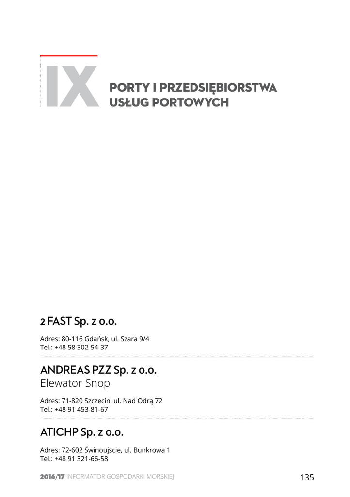 IxPORTY I PRZEDSIĘBIORSTWA USŁUG PORTOWYCH